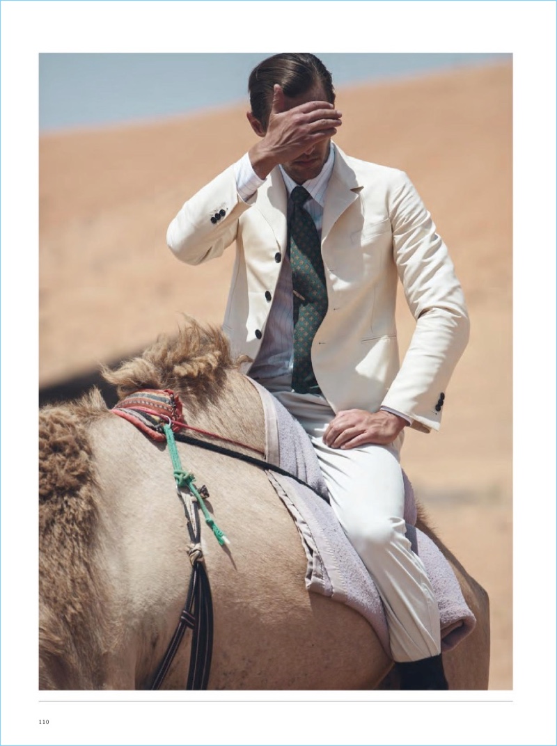 Robertas Aukstuolis stuns in a new story from The Rake. The Lithuanian model travels to Oman for quite the style adventure. Along for the expedition, photographer Kalle Gustafsson and stylist Jo Grzeszczuk join creative forces. Making a case for suave styles, Robertas gravitates towards designer tailoring. He sports labels such as Dior Homme, Brunello Cucinelli, and Ralph Lauren Purple Label.