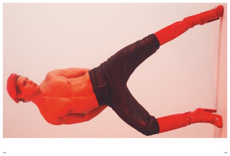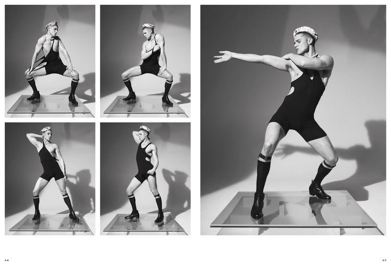 Ronan Murphy puts his best dance moves on display for a story from Middle Plane magazine. Hitting the studio in bold numbers, Ronan appears before the lens of photographer Benjamin Lennox. Meanwhile, Alexis Roche styles Ronan for the editorial. Sporting boots, jumpsuits, and more, Ronan rocks a variety of body-conscious looks. Roche outfits him in labels like Carlota Barrera.