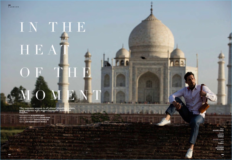 On the heels of a WSJ Italia story, British model Sam Webb takes us on an Indian holiday. The seasoned model travels to India with The Peak Hong Kong. Taking in the exotic sights and sounds, Sam embraces a chic summer wardrobe. Wearing lightweight fabrics, Sam showcases current pieces from labels such as Givenchy and Salvatore Ferragamo.