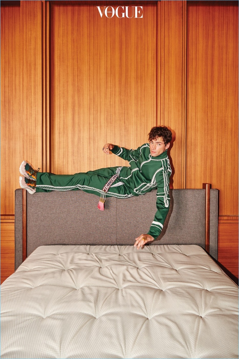 Sean O’Pry serves face as he delivers his best angles for Vogue Korea. The American model spends the day with photographer Shin Sunhye for the story. Embracing spring fashions, stylist Jo Yoon-hee pulls together a variety of looks. Exuding endless charm, Sean models outfits from brands like Versace, Gucci, and Louis Vuitton.