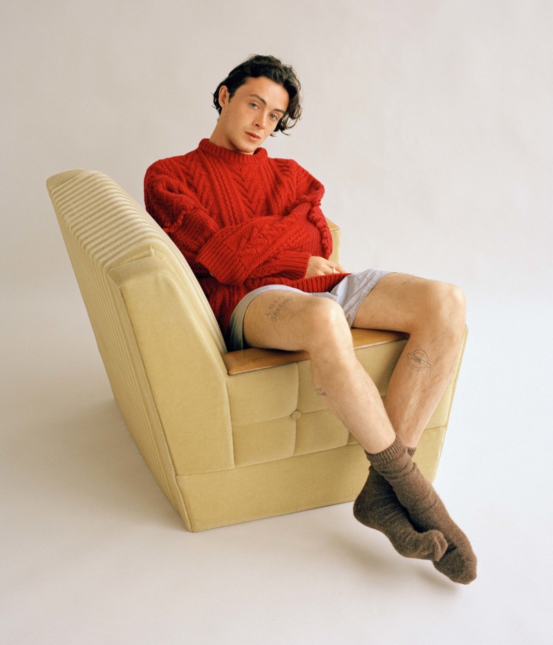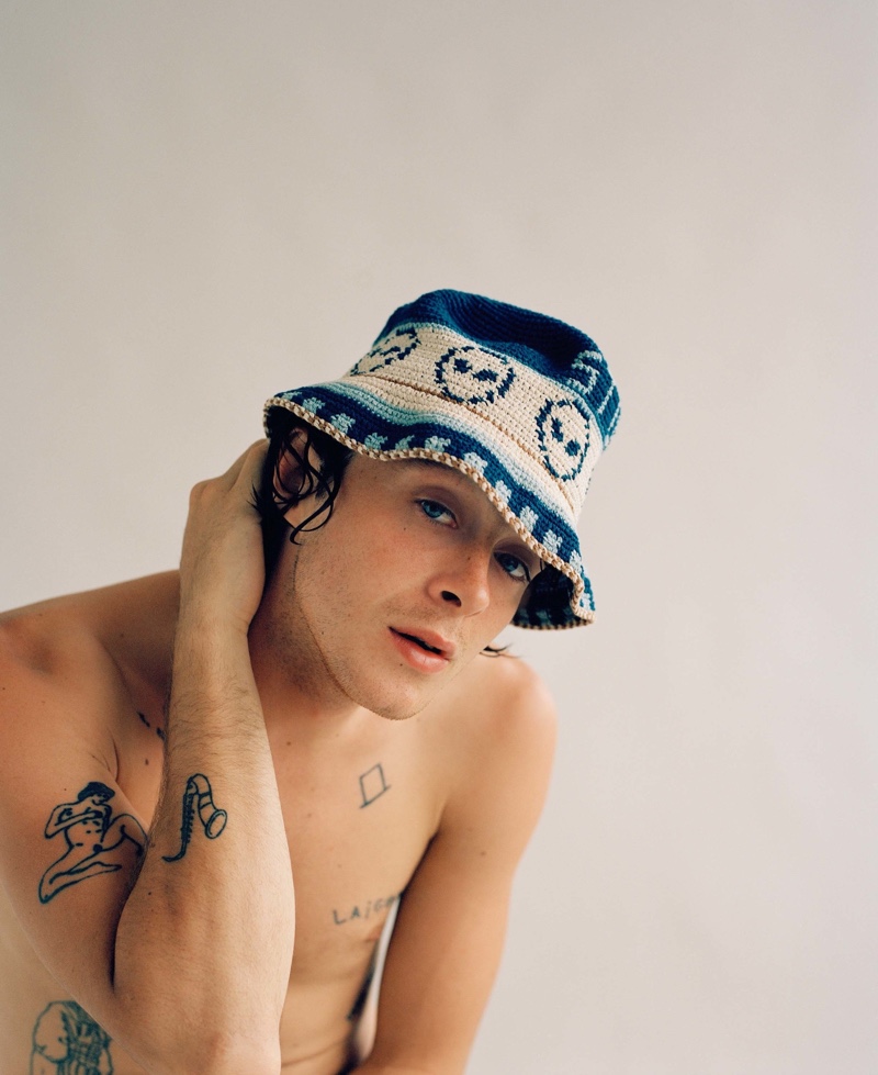 Poet and model Sonny Hall stars in a stripped-down story for Man About Town. Photographer Elliott Wilcox uses ambient light to capture a season of simple sentiments. Meanwhile, Lottie Warren styles the fashion editorial. Warren outfits Sonny in casual pieces that reflect his laid-back personality. Front and center, Sonny wears an array of clothing items. He sports everything from a Wolf & Gypsy Vintage top to a Gucci polo and Undercover sweater.