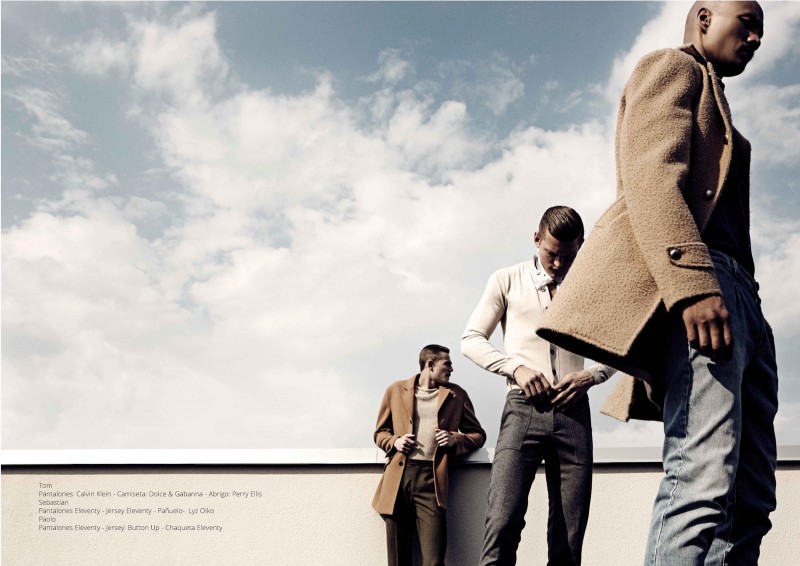 In addition to a cover shoot featuring Francisco Lachowski, photographer Leonardo Corredor links up with models Tom Barker, Paolo Roldan and Sebastian Sauve for a Risbel fashion editorial. The model trio covers the magazine’s latest issue in chic looks styled by Corredor as well. Heading outdoors for quite the outing, Tom, Paolo and Sebastian showcase fall ensembles from Perry Ellis, accented with other brands.
