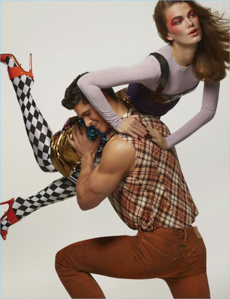 Nineties style is in the forefront as photographer Daniel Clavero shoots a story for the June 2018 issue of Vogue México. The editorial stars models Trevor Signorino and Mathilde Brok Brandi. The pair steps into the studio for a flashback of epic proportions. Sporting bold prints and colors, the models deliver a dynamic performance in front of the camera. Meanwhile, Angelo DeSanto styles the fun outing.