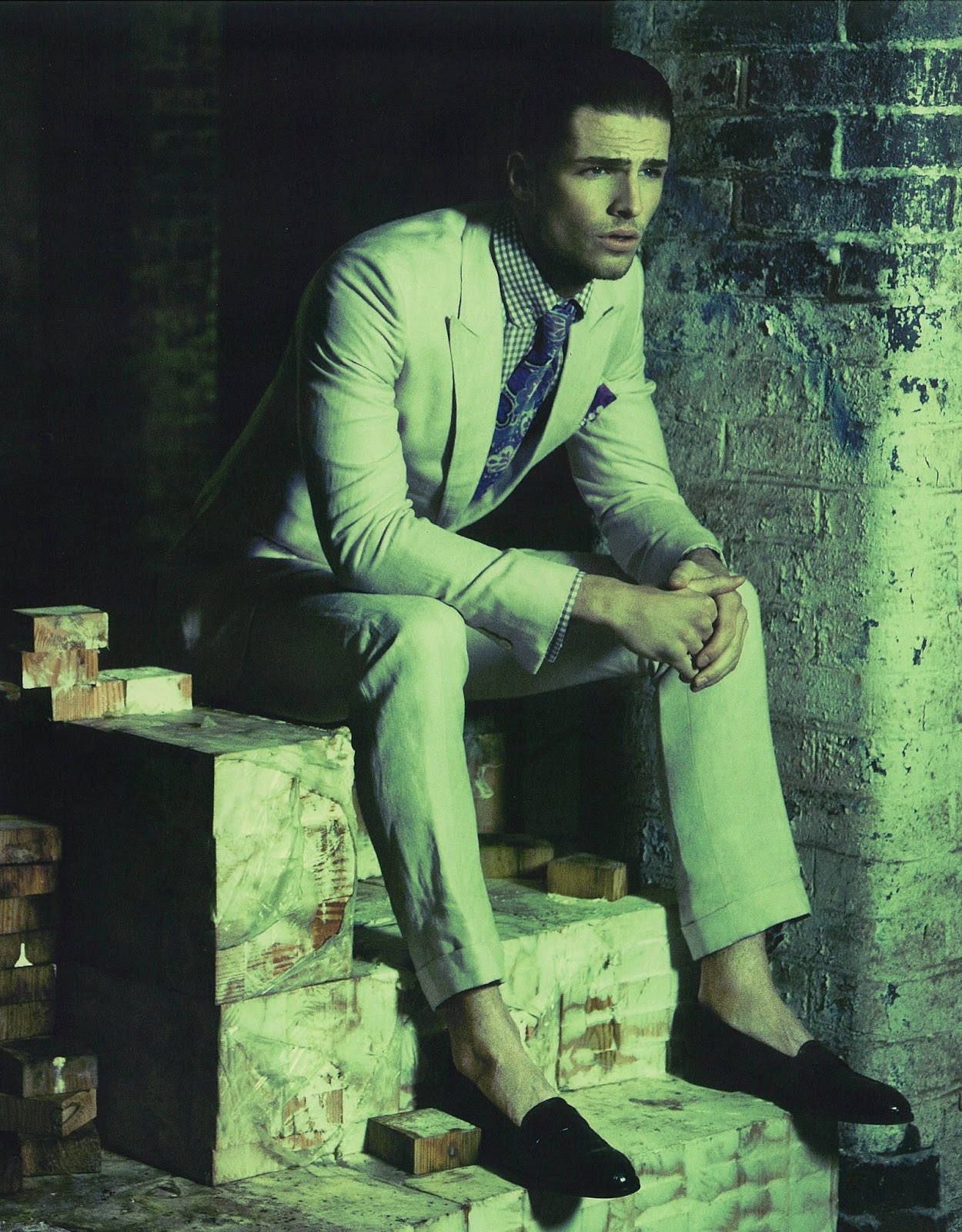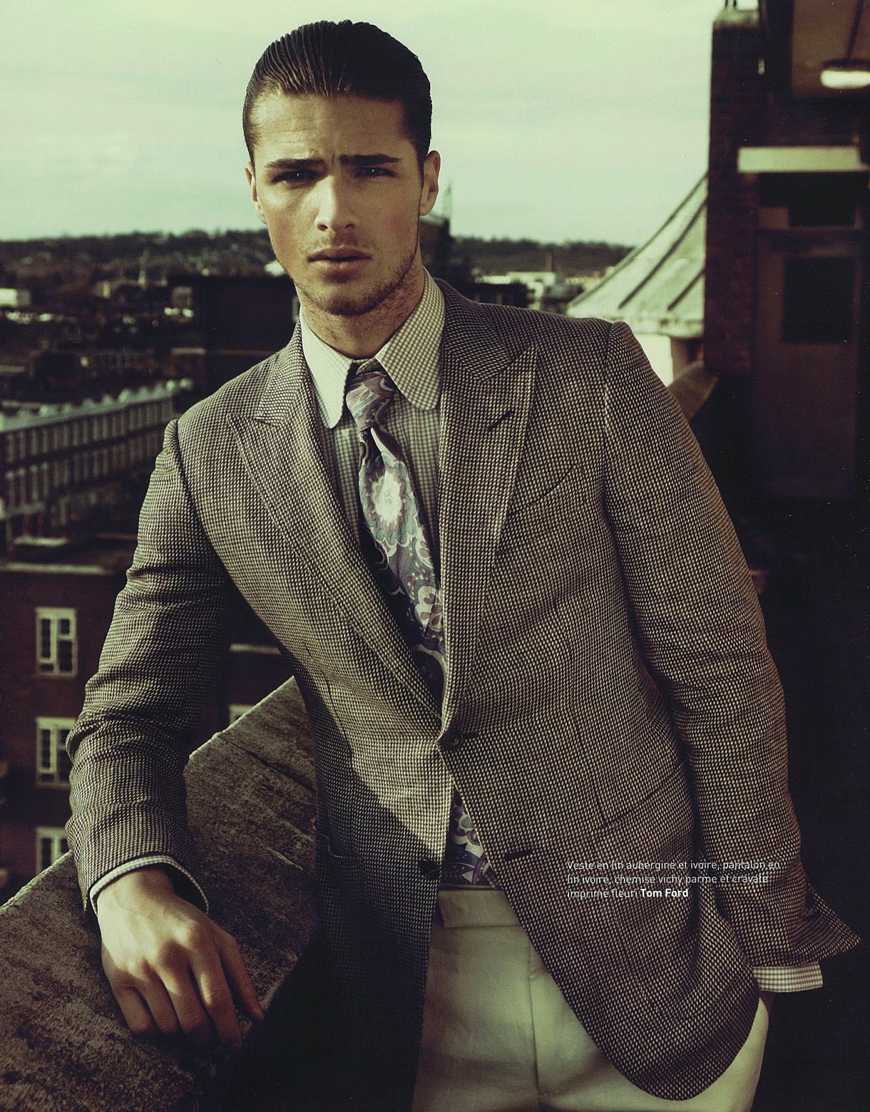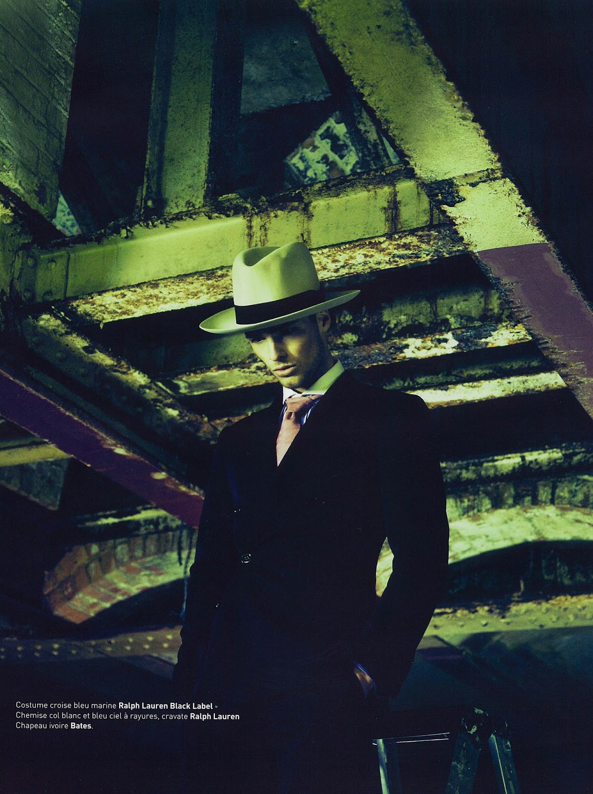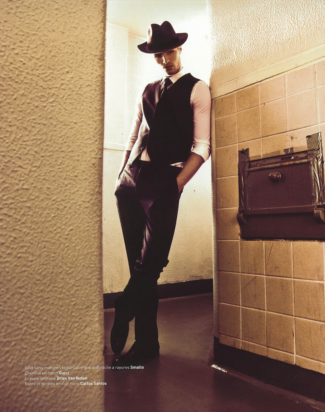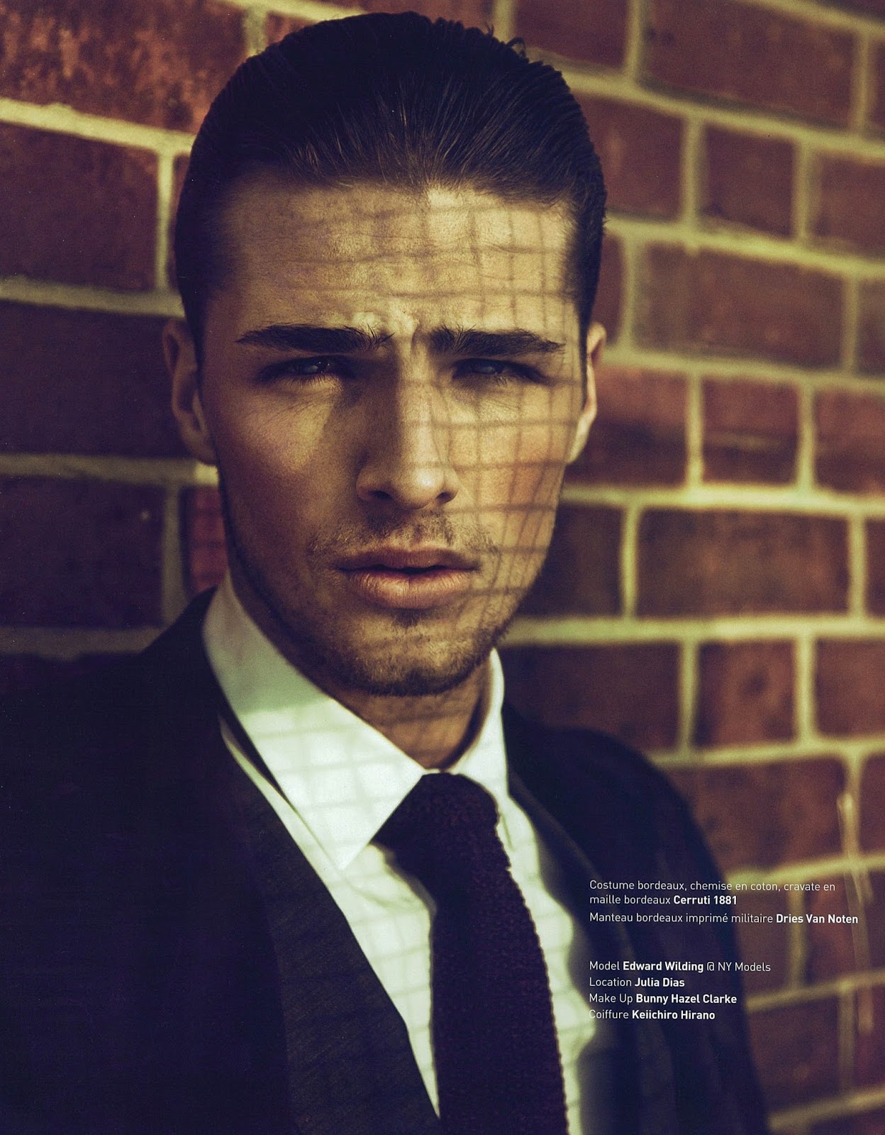Rough Cut–Taking inspiration from famous gangsters from the 1920’s, photographer Grant Thomas sets his sights on British model Edward Wilding (New York Model Management) for this story featured in the latest issue of Apollo Novo. Captured in the shadows or on the roof of a building with a great view on the city, Edward is styled by Fleur Huynh in sartorial ensembles from the likes of Dior Homme, Tom Ford, Paul Smith and others, while fedora hats complete the iconic gangster uniform, adding to the whole styling a retro vibe. / Hair by Keiichiro Hirano. Makeup by Bunny Hazel Clarke.