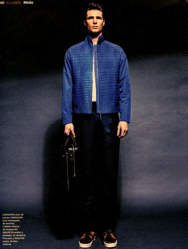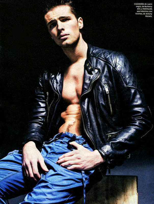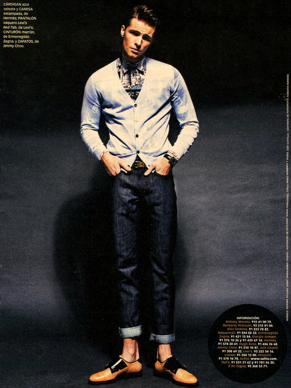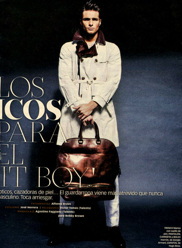 Spring Basics–Connecting with photographer Alfonso Bravo and stylist José Herrera for the latest issue of Spanish magazine XL Semanal, Sight Management model Edward Wilding stars in a fashionable spread featuring desirable spring designs from the likes of Burberry Brit, Giorgio Armani and Hermès. Pulling off his eclectic attitude, Edward is captured in the shadows of a studio, easily modeling casual designs, leather numbers and luxurious garments and accessories. / Hair by Victor Tomás. Makeup by Agostino Faggiano.