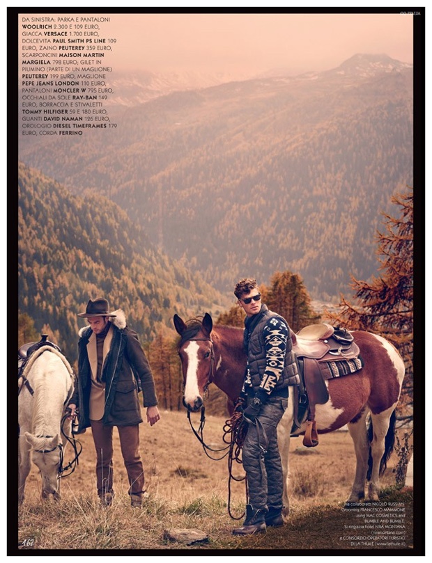 L’Ultimate Frontiera–Photographed by Diego Merino, models Edward Wilding, Tommy Dunn and Gaspard Menier grace the pages of GQ Italia with a fashion story featuring rugged, contemporary looks. Outfitted by stylist Andrea Porro, the handsome trio don essential garments and accessories from the likes of Burberry, Barbour, Pepe Jeans, Tommy Hilfiger and Versace.