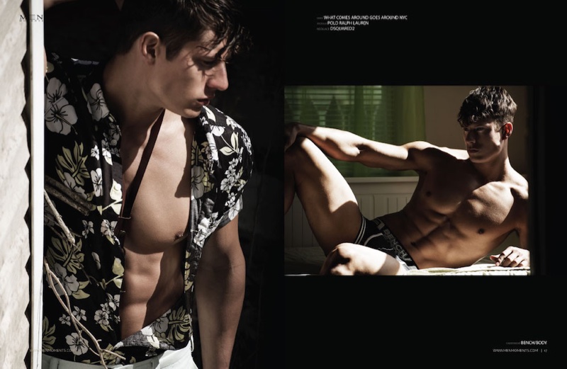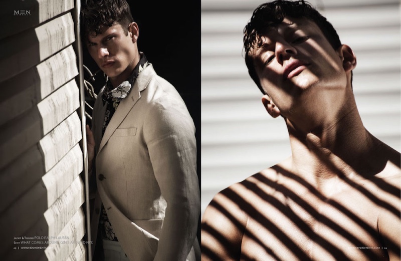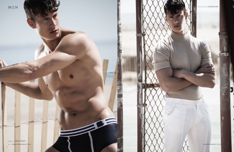 Landing the latest cover feature from Men Moments Magazine, model Eian Scully looks ready for summer wearing a mix of suits, swimwear and underwear styles. Photographed by Brent Chua and styled by Mari Matsumoto, the dark-haired fashion star wears looks from the likes of Emporio Armani, Calvin Klein and Polo Ralph Lauren for the editorial.