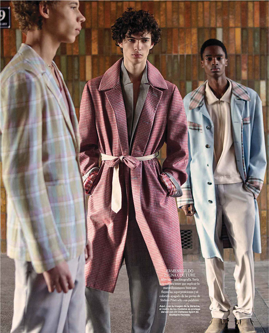 PinModels Lye-Amone Cassac, Piero Mendez and Bakay Diaby in Ermenegildo Zegna Couture for Icon El País.