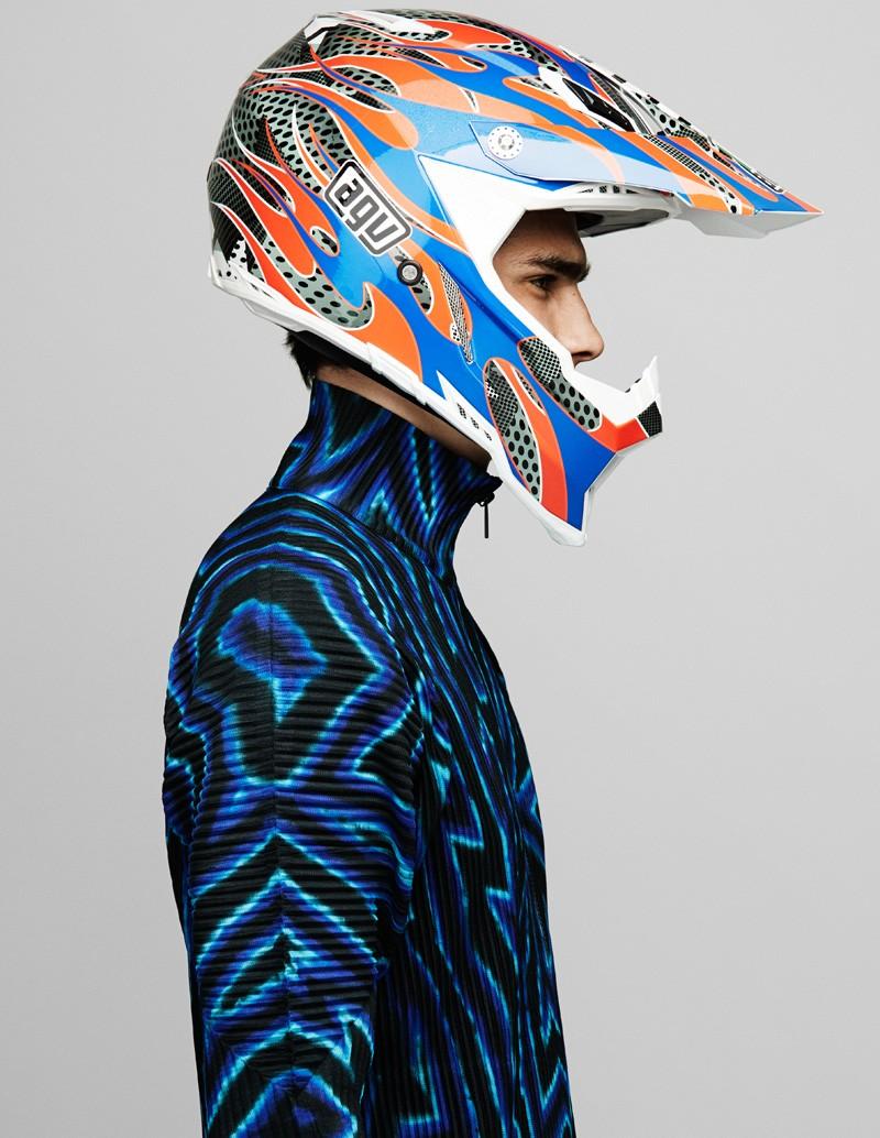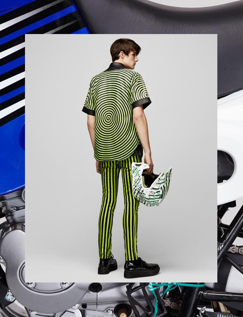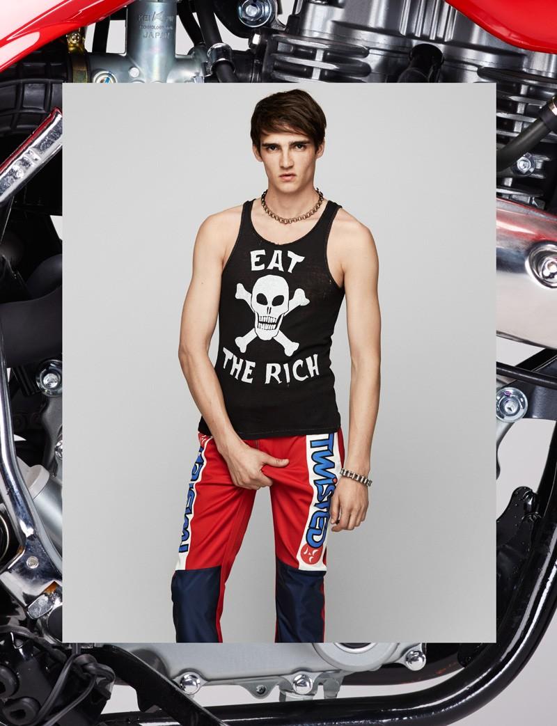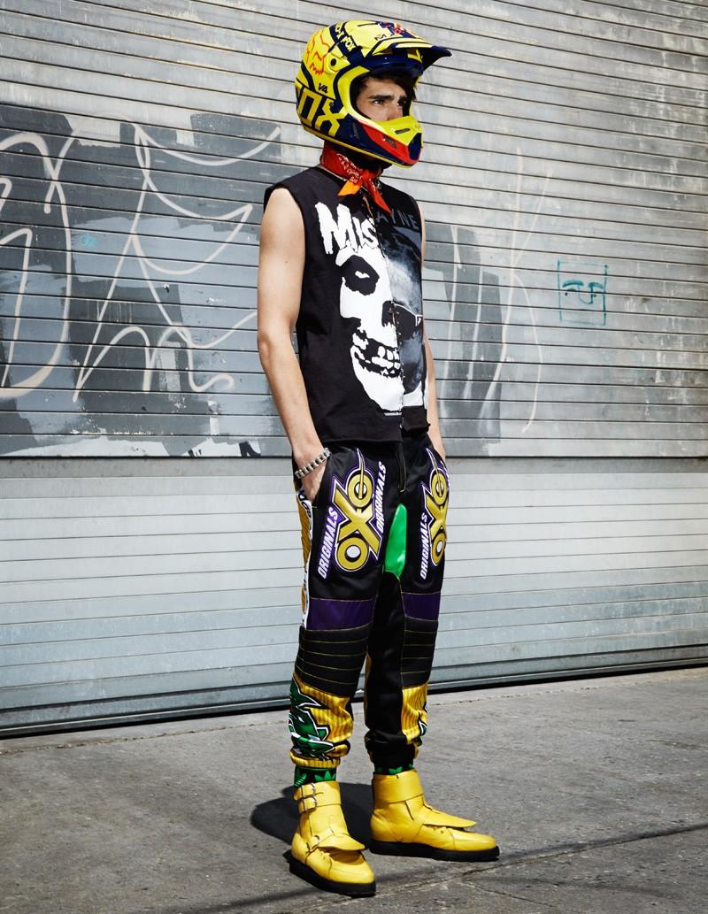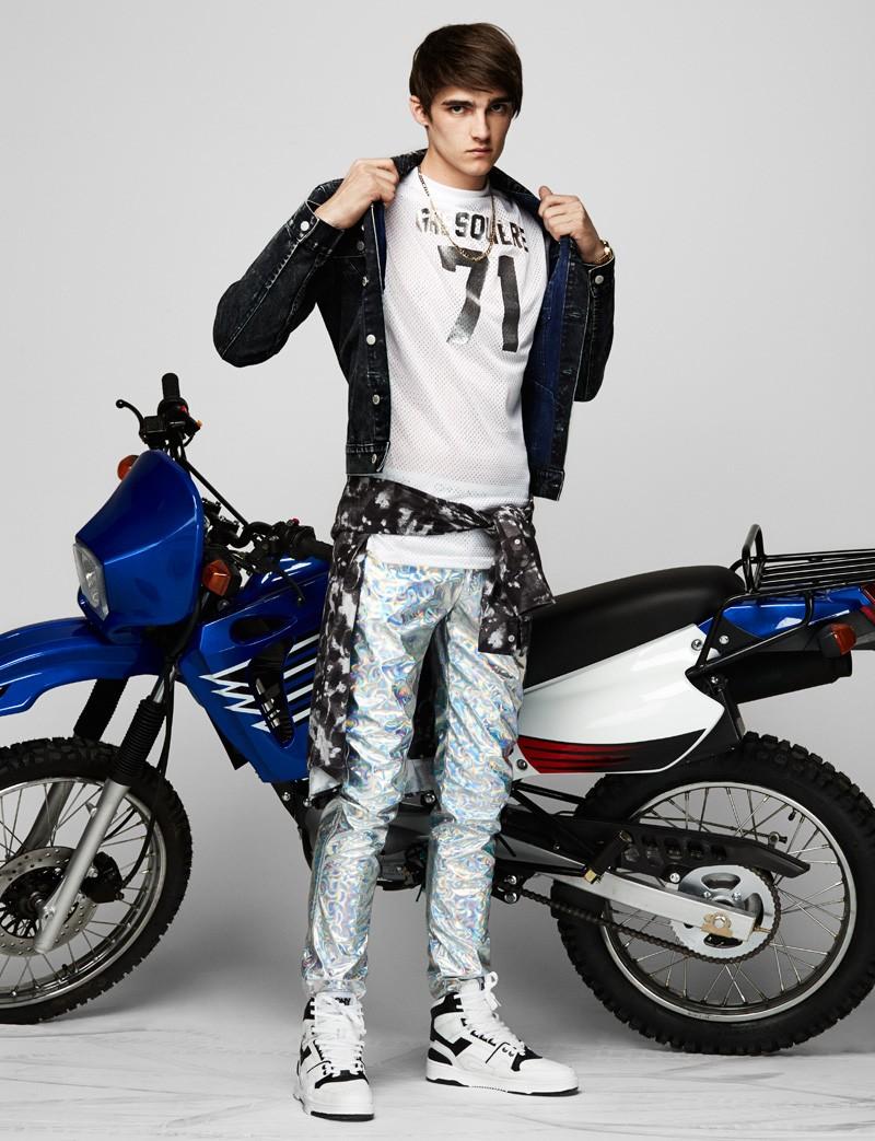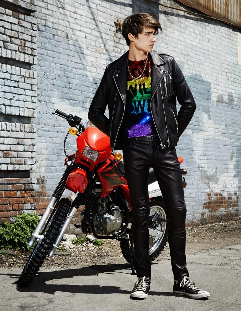 Ten Speed Hero–Model Elliot Vulliod is enlisted for a new editorial for British magazine Rollacoaster. Posing for images in New York by photographer Jason Kim, Elliot gets a sporty makeover, embracing moto-style. Outfitted by stylist Jessica Bobince, Elliot wears bright outlandish fashions, turning into a style savvy BMX biker, who has a penchant for leather and loud prints.