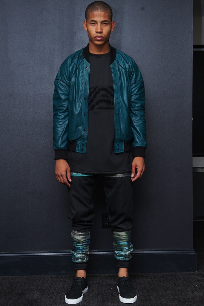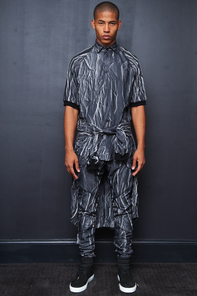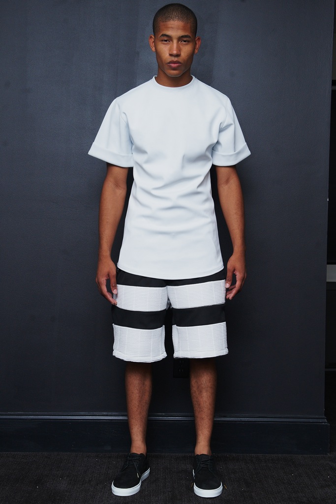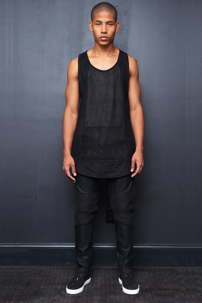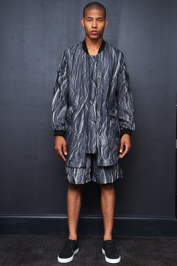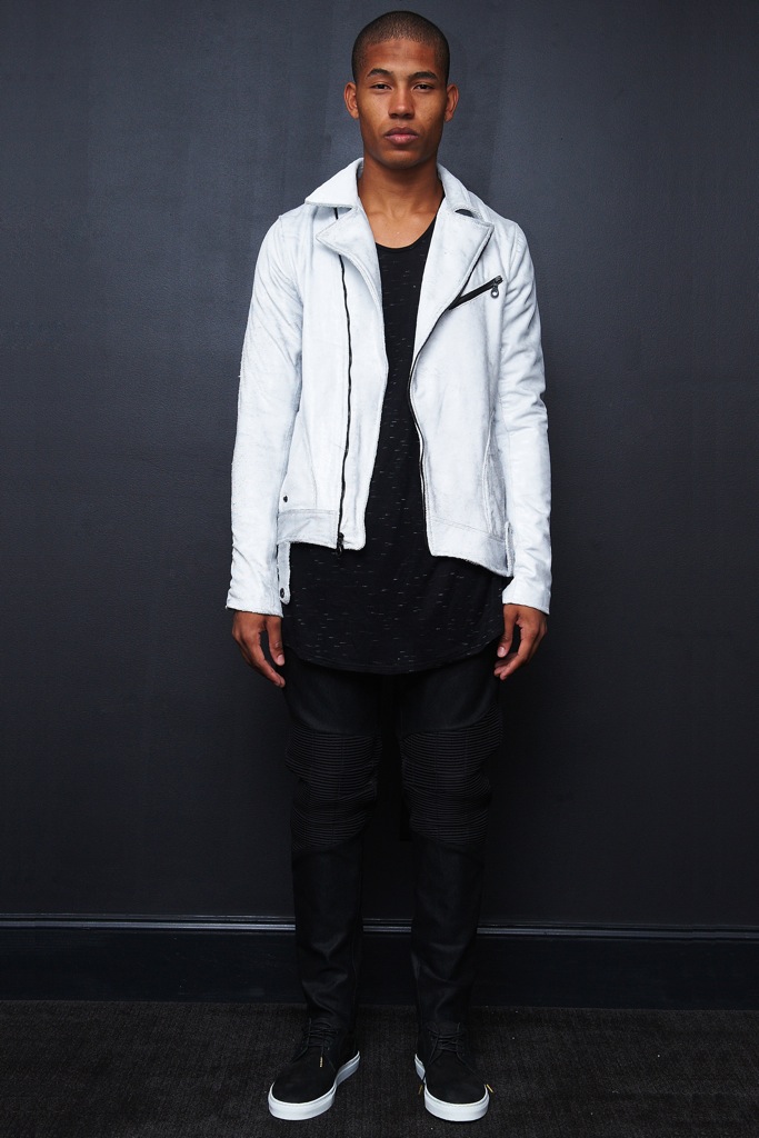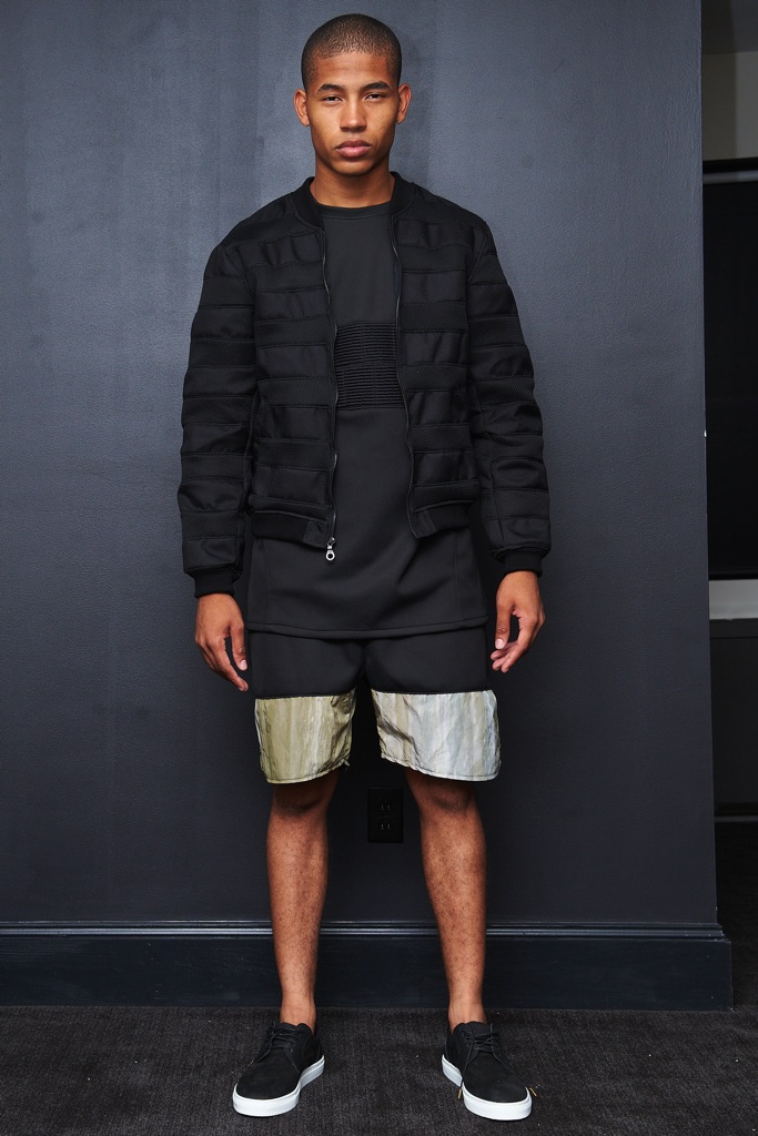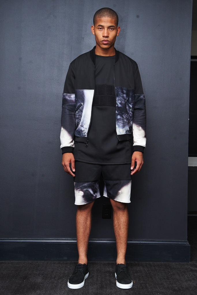 The Sportswear Lover–Graphics, sportswear, and a deconstructed edge were the stars of En Noir’s spring/summer 2014 collection. Shown during New York Fashion Week at Milk Studios, the brand pulled sportswear separates such as the bomber, and splashed the silhouette with painted prints and stitching details. Fabric treatment and intricate stitching were also integral elements to the collection, including the micro-binding of the pants and shorts as well as the use of metallic materials. Overall, the brand showcased a collection that was right on trend without losing the voice of En Noir.