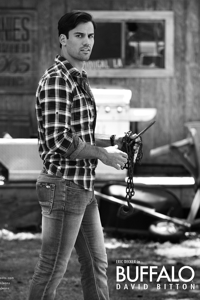 Buffalo David Bitton Fall/Winter 2014 Campaign-Jets wide receiver Eric Decker is the new face of Buffalo David Bitton for fall/winter 2014. Decker joins blond beauty Erin Heatherton, wearing a variety of casual ensembles that include the label’s signature denim, alongside relaxed shirting options, functional jackets and additional menswear separates.