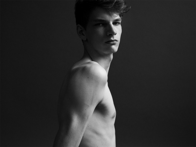 Focus on Erik-Buonomo & Cometti’s latest portrait series is with fresh face Erik Van Gils (16Men Paris). Entering the photographers’ studio during a break from the recent fashion week in Paris, Erik is captured shirtless in black & white portraits, donning a basic pair of washed jeans, matched with a black coat from DidierAngelo’s latest collection. Delivering his best angles and young features, Erik definitely personifies the spirit of contemporary youth.