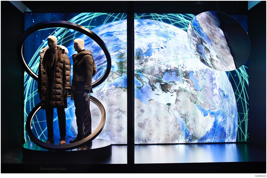Zegna at Harrods-The first menswear brand to take over all of Harrods’ front windows, Ermenegildo Zegna Couture, helmed by Head of Design Stefano Pilati, will be featured from now until October 19, 2014. The brand’s windows feature the fall-winter 2014 collection as well as imagery inspired by the astronomical film showcased at Ermenegildo Zegna Couture’s January show during Milan Fashion Week. Commemorating the experience, Harrods will also have limited edition footwear and leather bags available for purchase.