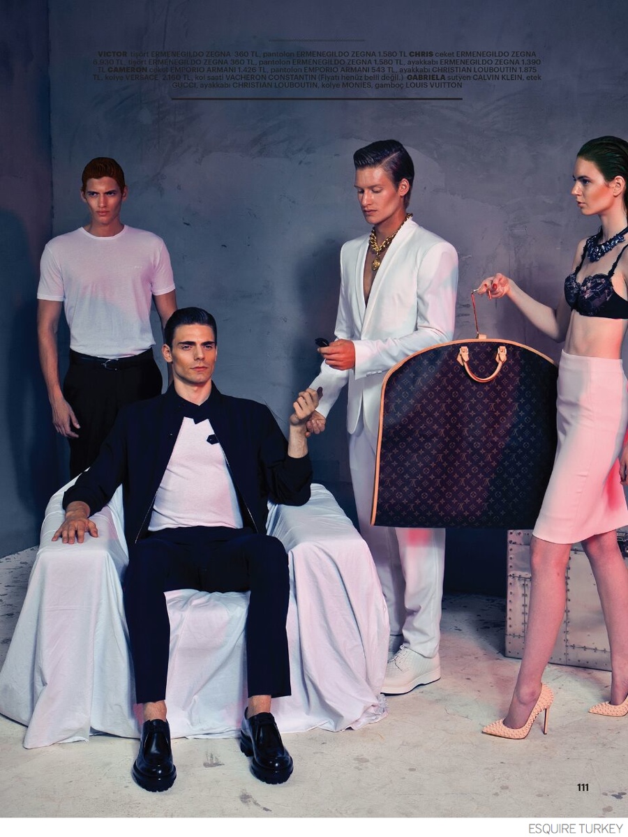 Fashion Procedure-Photographer Cleoekin delivers a larger than life narrative for the pages of Esquire Turkey’s August 2014 issue. Set in a doctor’s operating room, the fashion editorial features models Chris (ArtROOM), Miriam (Respect), Victor, Cameron, Viera and Gabriela (Option) in stylized images that present luxe fashions from Emporio Armani, Dolce & Gabbana, Versace and countless other labels. / Creative direction and styling by Ramazan Tunç Gülşen. Makeup by Deniz Hancıoğlu. Hair by İbrahim Zengin Jr.