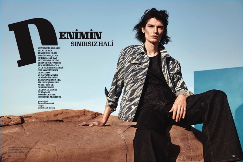 Denim is front and center for a new editorial from Esquire Turkey. Stylist Duygu Altıparmak features must-have denim clothes from an array of covetable fashion labels. Model Nariman (True Models) inspires as he layers in Saint Laurent, Levi’s, IRO, and more. Appearing before photographer Omer Faruk Gokalp, Nariman sports denim jackets, shirts, jeans, and even overalls. / Hair by Harun Ates. Makeup by Murat Akbulut.