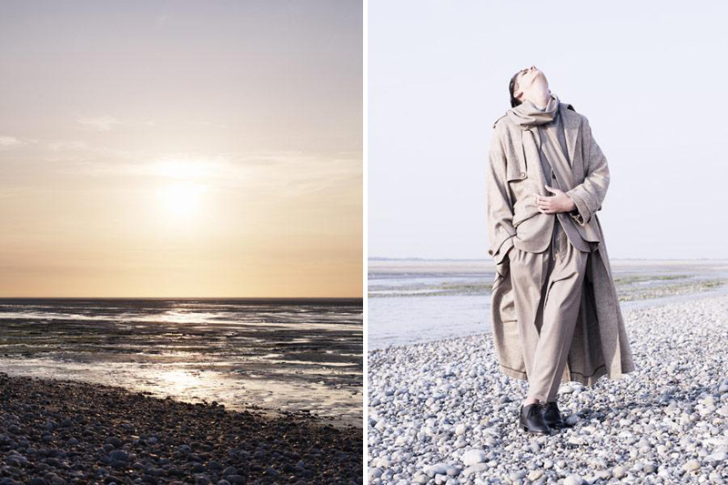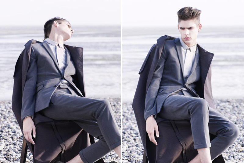 Dressed in the soft layers of Dior Homme designer Kris Van Assche, Ethan James finds peace on a rocky beach for his recent editorial in L’Officiel Hommes China. Photographed by Alessandro Dal Buoni, complete fall Dior ensembles show the marriage of light and dark with an earthy clay palette embraced by thoughtful constructions.