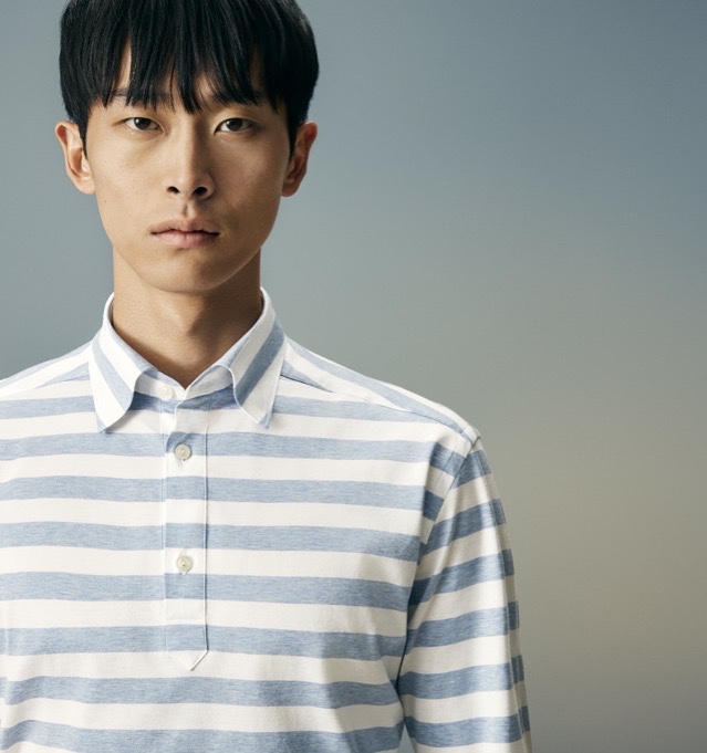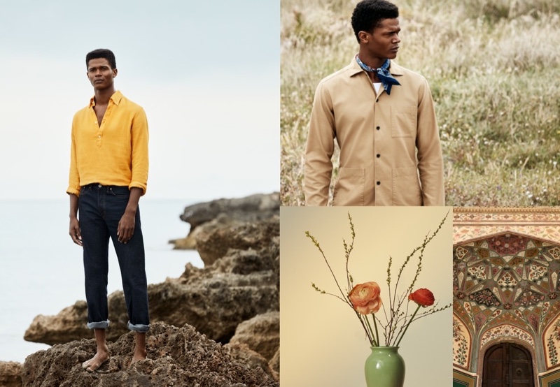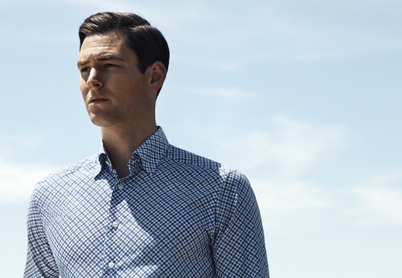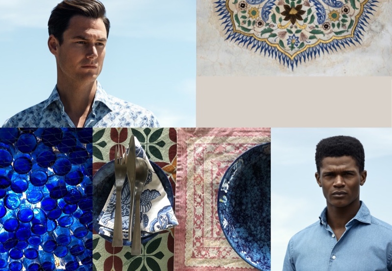 Sporting Eton’s collection of shirts with rich colors and detailed patterns, models O’Shea Robertson, Min Shin, and James Farrar come together as the faces of the season.