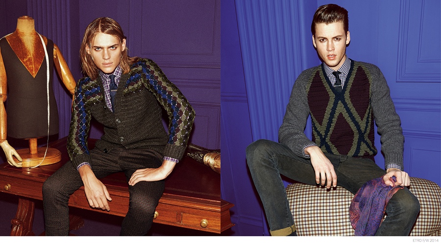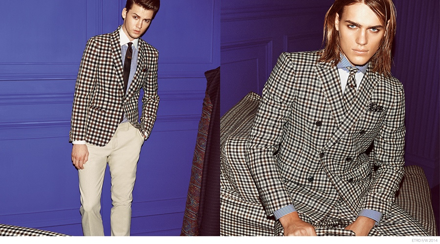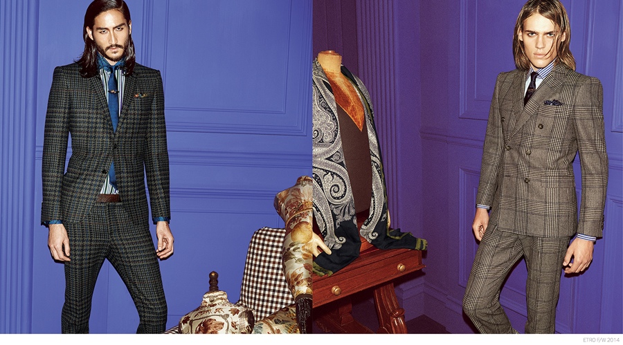 Etro Fall Suiting-Italian fashion house Etro may be known for its signature paisley print, but for fall, the label proves another area of expertise in tailoring and suiting. Inspired by British style and visions of Savile Row, Etro has fun with fall suiting. Enlisting models Alfred Kovac, Ton Heukels and Tony Thornburg for the season’s lookbook, Etro unveils sharp suits in a variety of finishes. In a rich fashions, windowpane prints join houndstooth and pinstripes for a series of suits that are anything but boring. Thrown into the mix are coats with a timeless silhouette and bright cheerful hues. Rounding out the selection, a subtle military influence adds a splash of fun with cropped fitted jackets featuring coat tails.