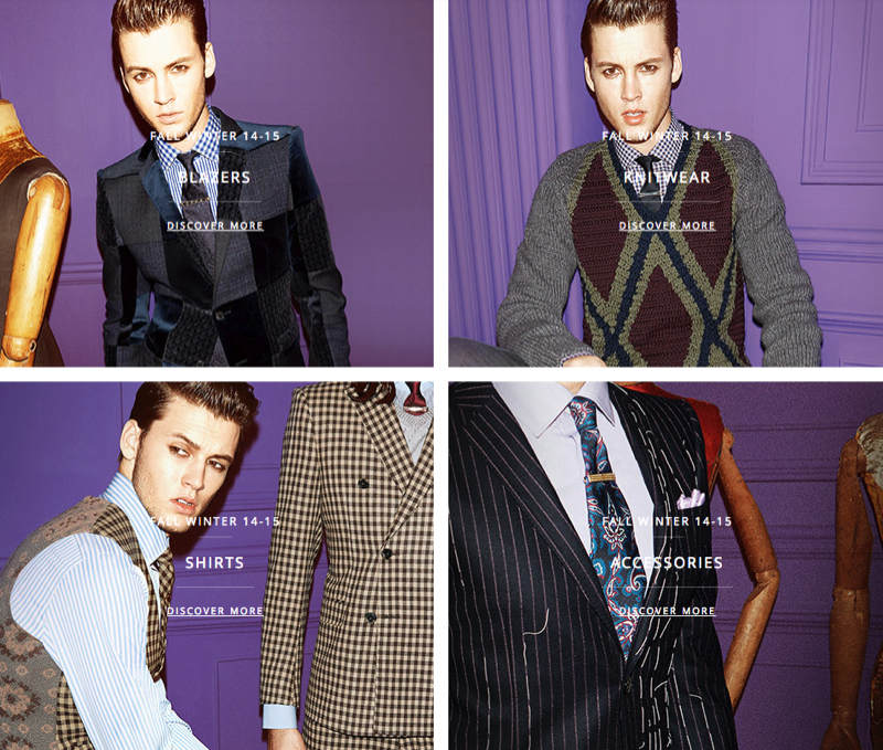 Etro Online–A year after its first e-commerce launch, Etro has extended its online market to the United States. Not limited to just clothing sales, the website also can be viewed to look at new collections and to get to know the history of the brand. In addition to the men’s and women’s collections, there is also fragrances and home collection, all portrayed via vivid and glossy photo spreads. Etro’s men styles include outwear like classic coats, formal suits, printed knitwear, button down shirts, and colorful jersey polos.