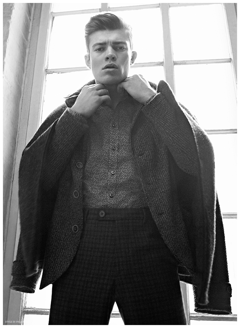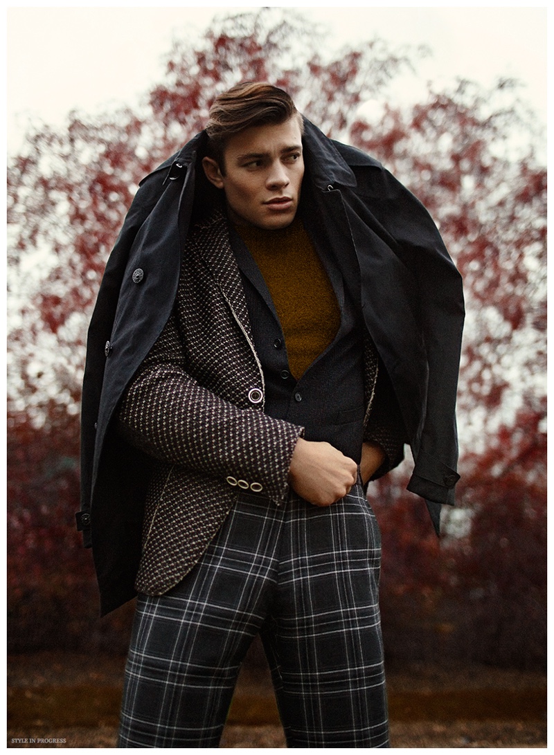 Talking to the Clouds–Eugen Bauder (Mega Model) returns to the limelight as he connects with photography duo Harling & Darsell for a new photo shoot featured in Style in Progress magazine. Donning chic menswear looks, Eugen is outfitted by stylist Mody Al Khufash (JLFF Studio). The striking editorial includes pieces from Tommy Hilfiger, Marc O’Polo, Woolrich, AND and Stone Island. / Grooming by Benjamin Becher (Nina Klein). Fashion assistance by Helena Grierson.