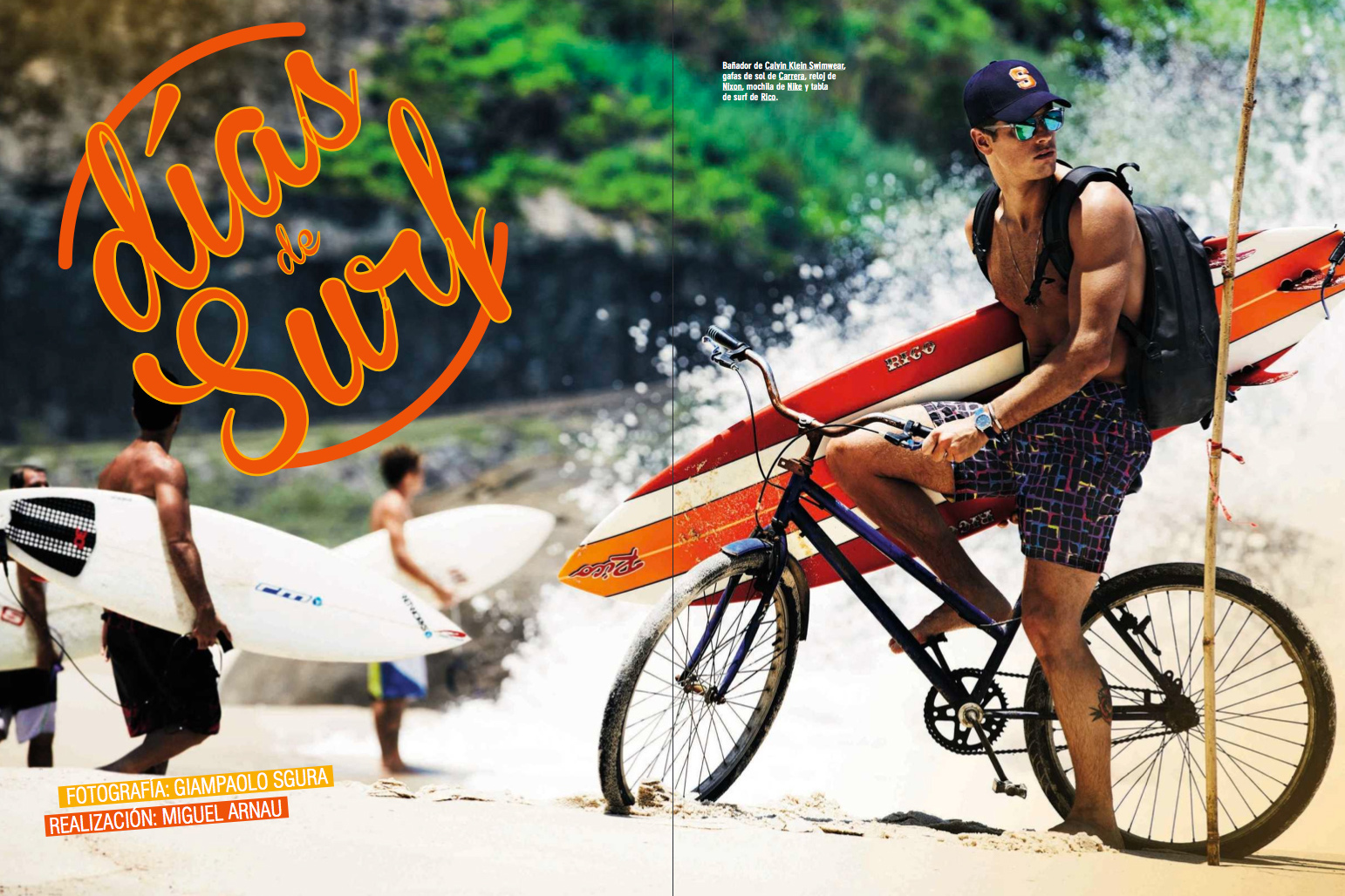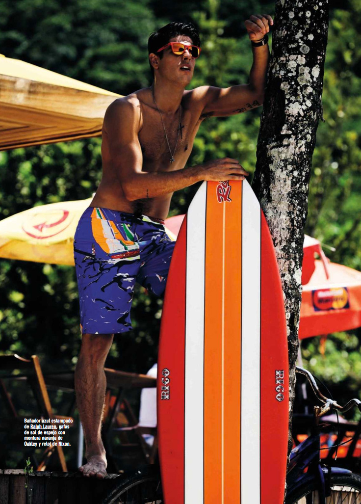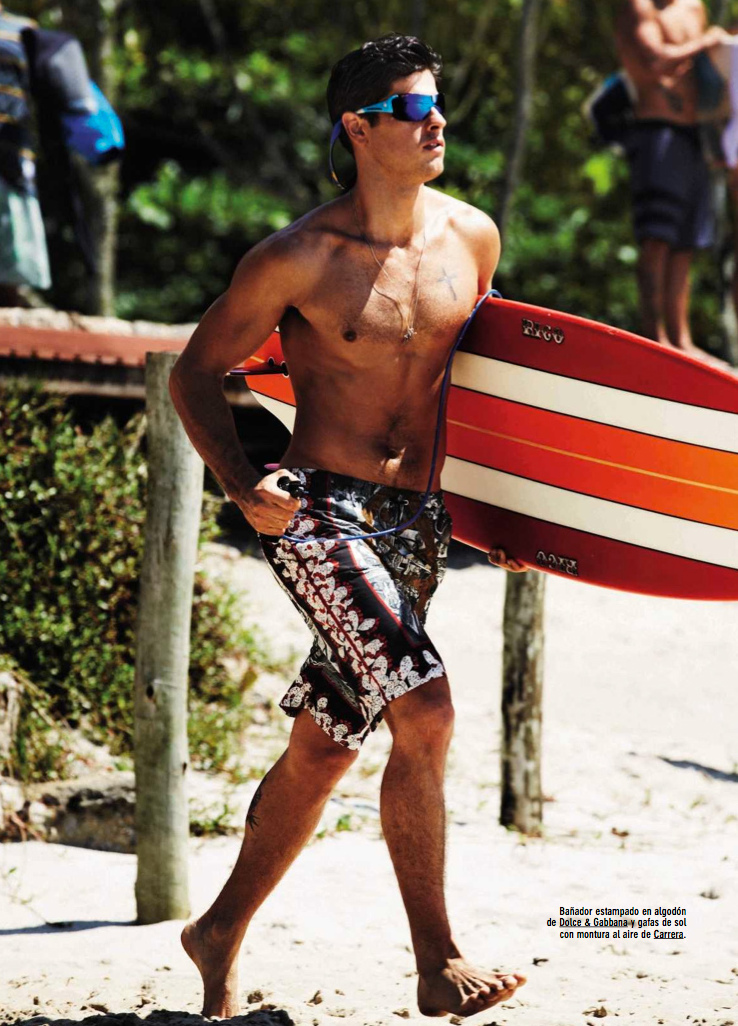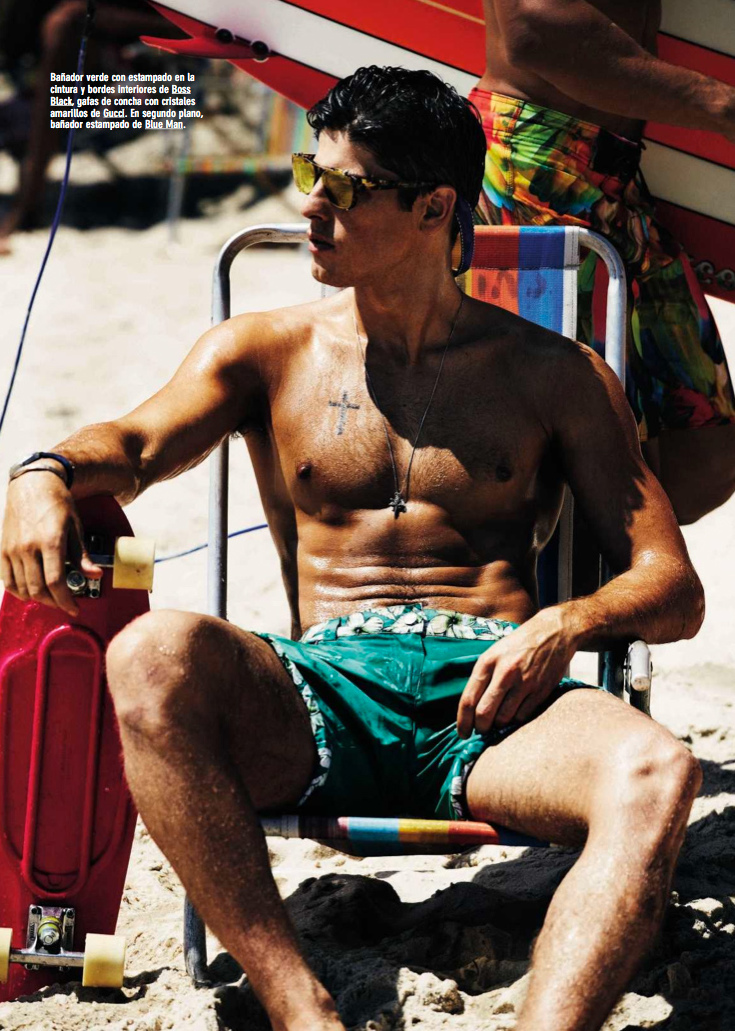 Body in Motion–Photographer Giampaolo Sgura and fashion editor Miguel Arnau reunite with model Evandro Soldati to shoot a dynamic story published in the June issue of Spanish GQ. Focusing the attention on summer’s most desirable beachwear styles, Sgura photographs the Brazilian model in a series of saturated images, where the colors of the sea and the nature create the perfect background for the designs selected by Arnau for the editorial. From bold neon colors, to exotic floral prints, Evandro is the perfect surfer, embracing an active lifestyle on the beach, but without forgetting to protect his head and eyes from the damages of sun, thanks to fashionable caps and mirrored sunglasses. / Photography assistance by Angela Imptora and Filippo Tarentini. Styling assistance by Leonardo Neves. Grooming by Andrew Guida (CloseUp Milano). Makeup by Jessica Nedza (CloseUp Milano).