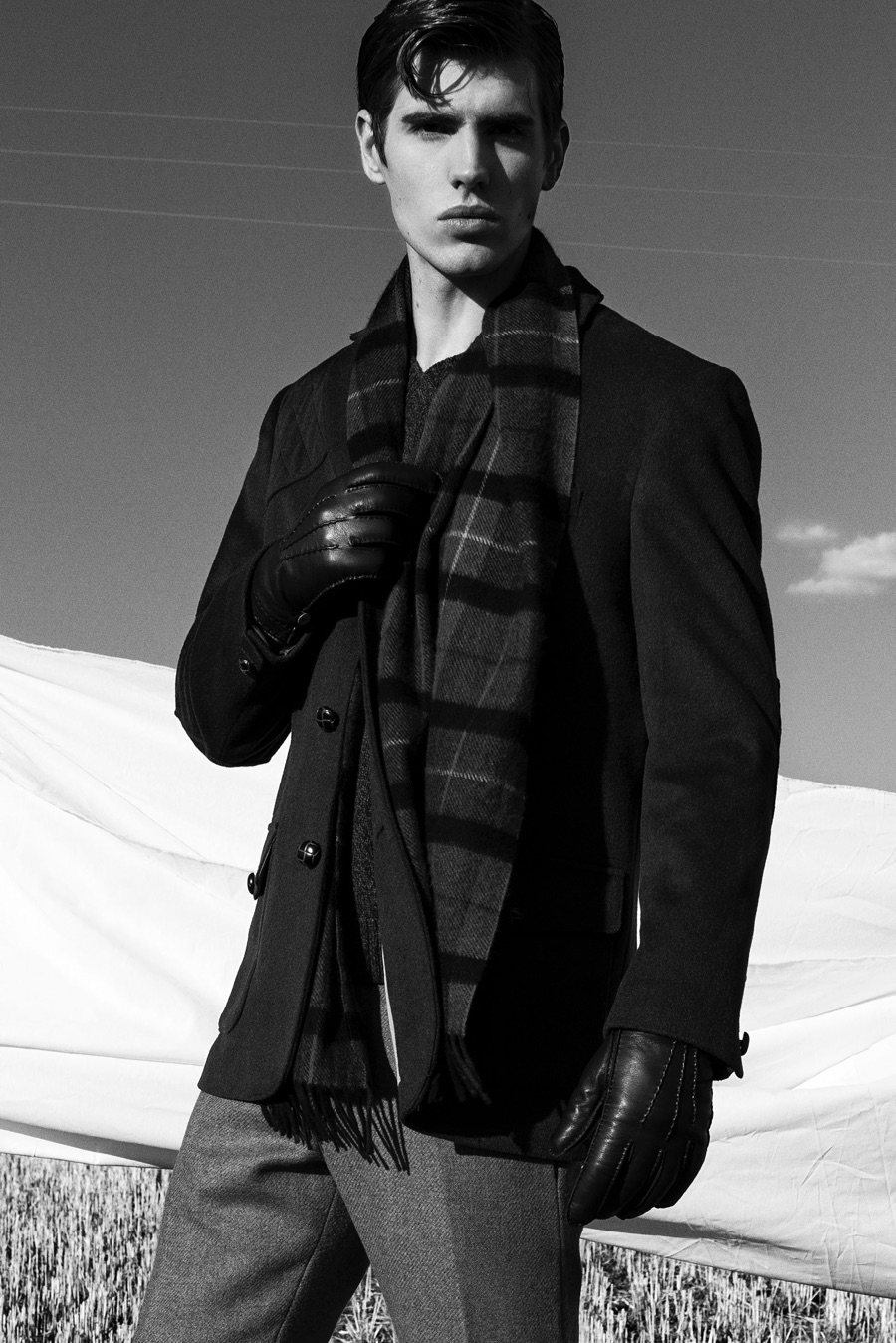 PinWill wears trousers Ana Locking, gloves Soloio, sweater, jacket and scarf Alan Paine.