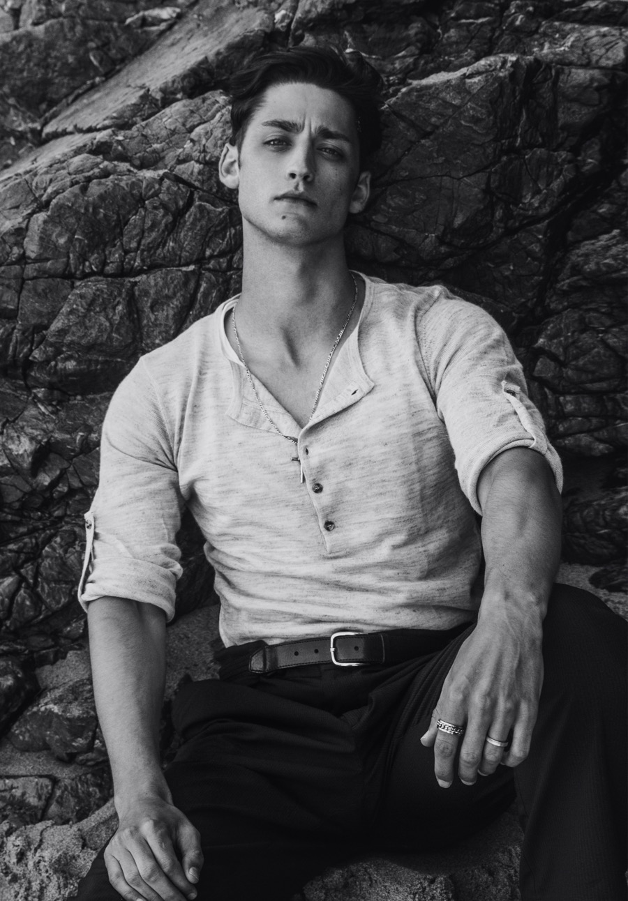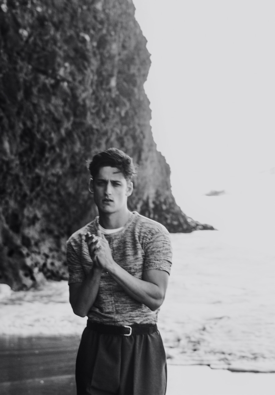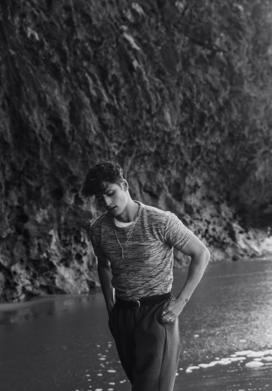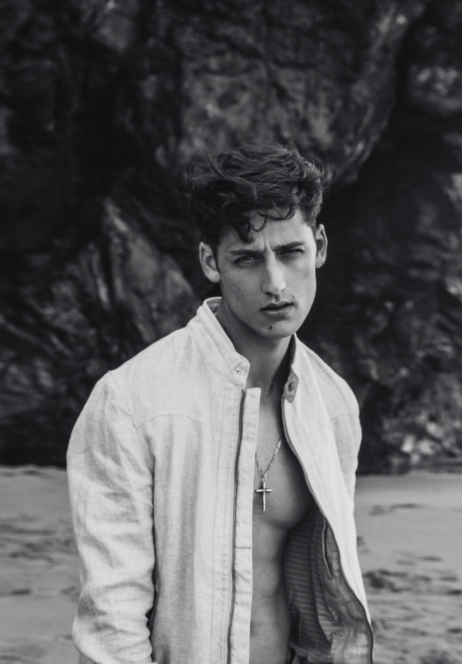 Carlos Ferra channels a classic sense of machismo for a new exclusive. Visiting the Portuguese beach destination of Praia da Adraga, Carlos is photographed by Ricardo Santos. Embracing a wardrobe of vintage and summer fashions, Carlos is styled by Joel Alves. Capturing a chic ease, Alves pulls together retro-style tops, trim trousers and lightweight jackets for quite the inspiring beach outing. / Grooming by Inês Aguiar.
