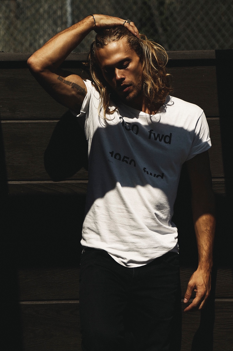 Model Christopher Mason embodies an easy confidence as he stars in a new exclusive. The Wilhelmina Los Angeles model crosses paths with photographer Jorden Keith. Bringing a natural cool to a low-key day, Christopher dons a mix of vintage pieces and fashions by local labels. Contributing to a contemporary ease, Blake Hardy styles Christopher in brands such as Citizens of Humanity and Paige Denim. Wearing relaxed t-shirts and slim-fit denim jeans, Christopher also appears before videographer Blake Atienza for a mesmerizing video.