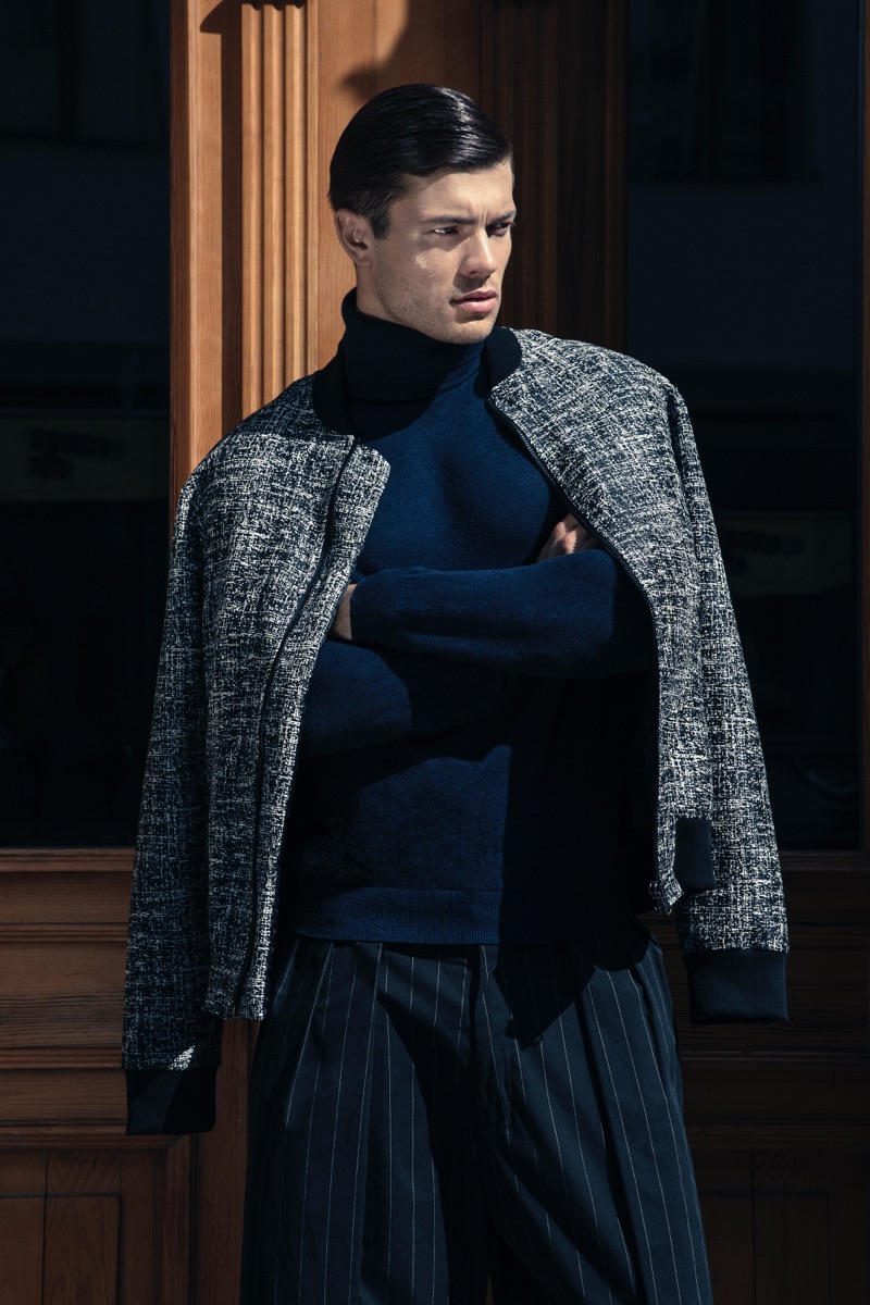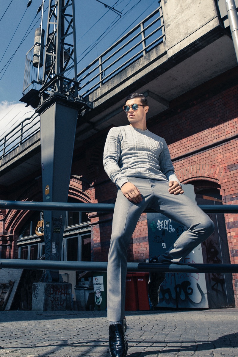 German model and actor Eugen Bauder returns home to Berlin for our most recent feature. The seasoned model veteran spends a day with photographer Ascanio Vardan. Taking in the local sights, Eugen is a sleek vision, thanks in part to stylist, Celso Da Costa Hamelink. Appearing in striking images, Eugen dons chic turtleneck sweaters, pleated trousers, and must-have coats. Hero pieces come together from brands such as Ivanman and Brachmann. / Grooming by Sarah Hartgens using M.A.C. Cosmetics and Kevin Murphy.