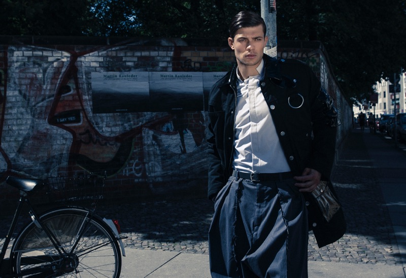 PinSpending a day outdoors, Eugen Bauder wears sunglasses Mykita, turtleneck Ivanman, leather jacket Siyah, and pants Keisuke Yoneda.PinAscanio Vardan photographs Eugen Bauder in raincoat Stutterheim, trousers Ivanman, and sweater Kiomi.PinA svelte vision, Eugen Bauder wears sunglasses IC! Berlin, sweater Kiomi, trousers Ivanman, and shoes J Fenestrier.PinCelso Da Costa Hamelink styles Eugen in turtleneck sweater Kiomi, striped trousers and bomber jacket Siyah.PinModel Eugen Bauder wears shirt Brachmann, pants Siyah, and jacket Cheap Monday.PinEmbracing a minimal look, Eugen Bauder wears shirt Frisur and coat Brachmann.