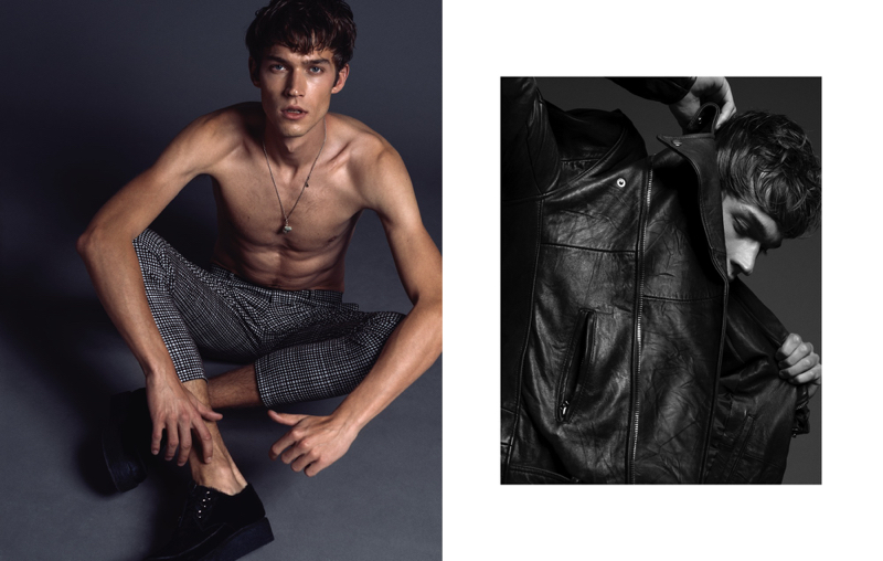 Left: Jonas wears trousers COS and shoes Whyred. Right: Jonas wears leather jacket Deadwood.Pin