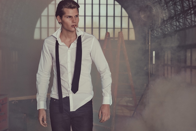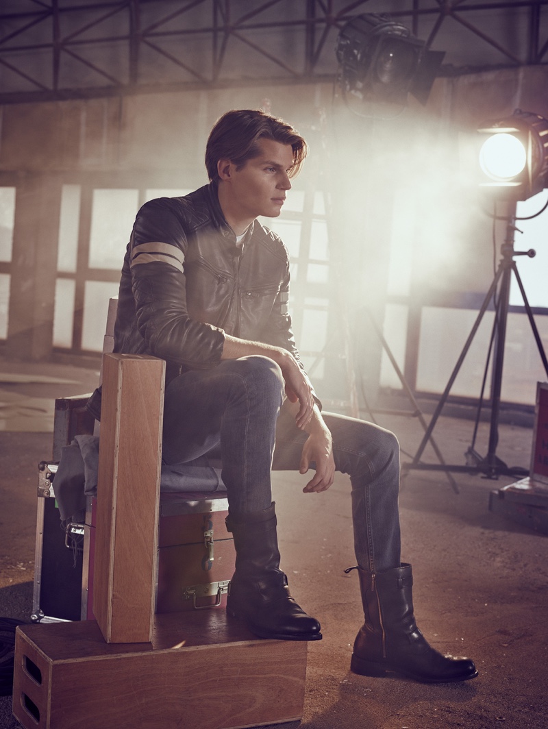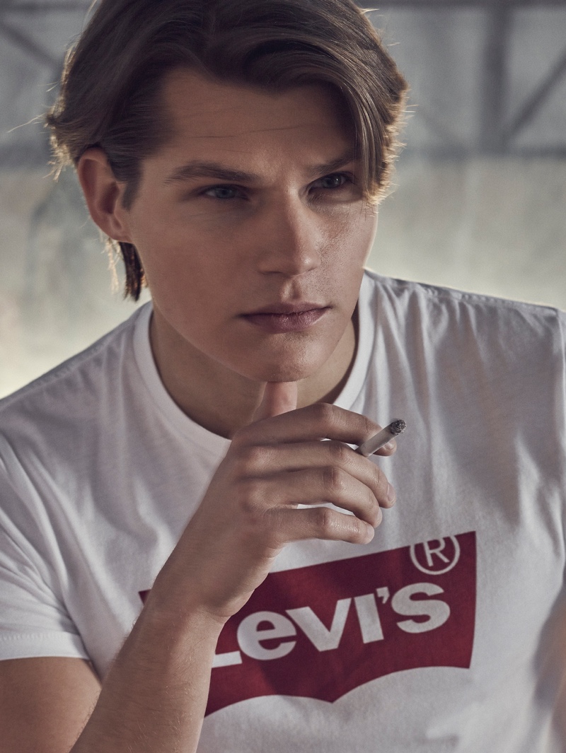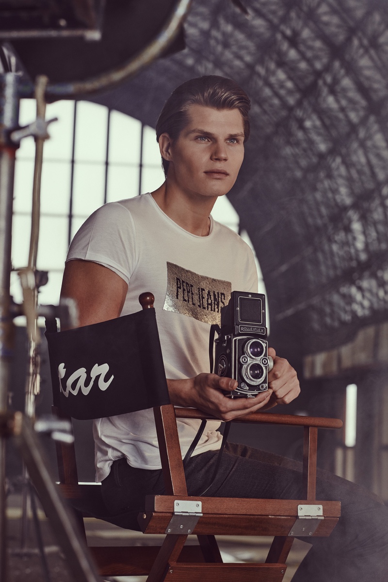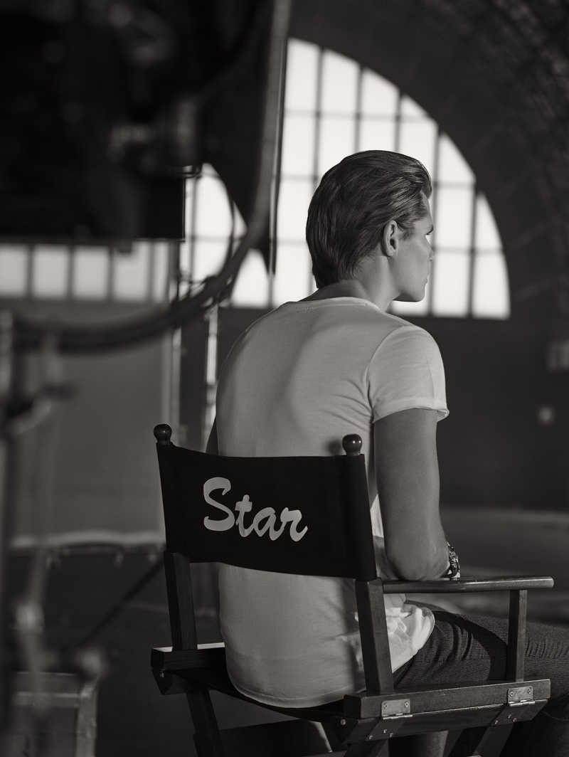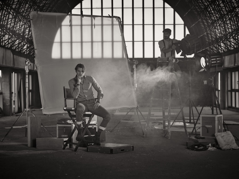 The cameras are rolling as David Hudd (Blow Models) takes to the set for a new story from photographer Alberto G. Puras. Entitled One, Two, Three…Rolling, the editorial features creative direction by Jessica Rodríguez Ligero. Together with Puras, Ligero dreams up a narrative for the bright eyed up and comer. Cast in the spotlight, David wears a relaxed wardrobe pulled by stylist, Veronica Duelt. Brands featured include Lee, Ray-Ban, and Levi’s. / Grooming by Cristina Libertad. Digital retouching by Francisco Sosa. Photo assistance by Cesco Rodriguez. Running by Nacho. Special thanks to Weare Hotels and Espacio Harley.
