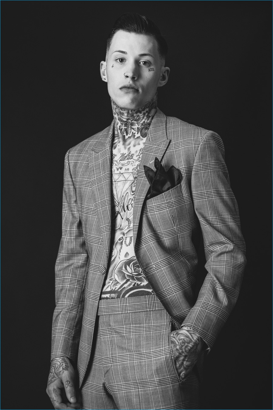 English model and barber Ryan Davies-Hall is front and center for our latest exclusive. We get a formal introduction to the MiLK Management model with a new shoot lensed by photographer Alexander English. Presenting a contrast to his tattoos, Ryan is given a formal style overhaul with fashions pulled together by stylist Jeffrey Cameron. Sporting tailoring, Ryan is captured in brands such as Prada, Ralph Lauren Purple Label and Stephen Williams. / Grooming by Mimi Kobayashi.