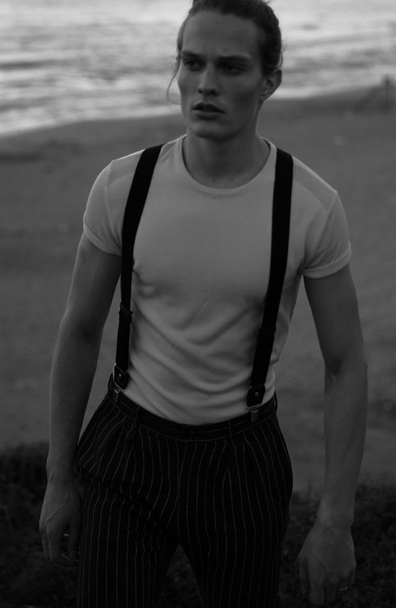 PinLucas wears t-shirt IRO, suspenders Beymen and trousers Zara.