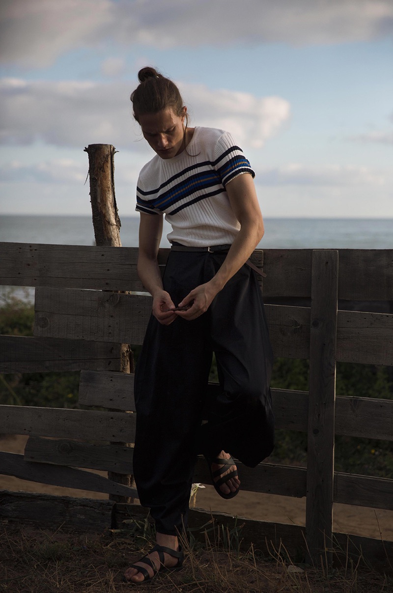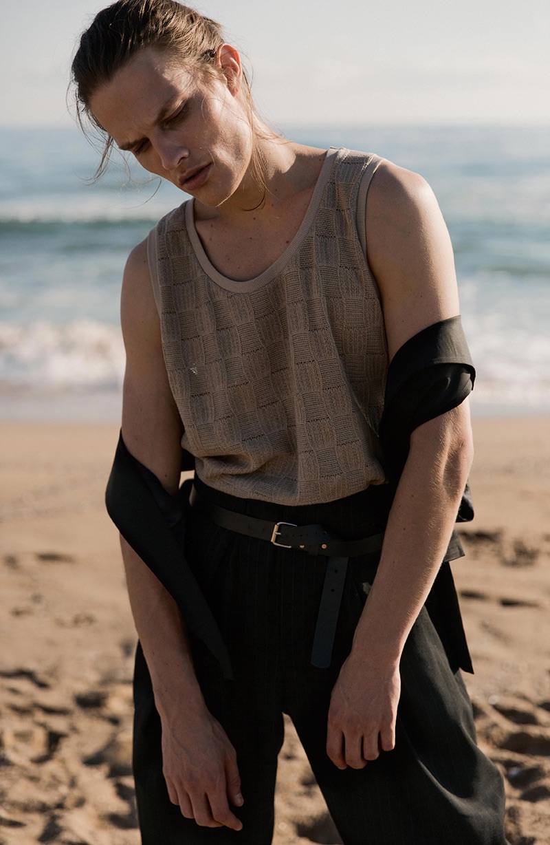Lucas Kittel (Option Istanbul) is a trendy vision as he takes to the beach in relaxed tailoring. Photographed by Caner Demir, the Brazilian model is styled by Tarik Gül. Hitting the fashion trends one by one, Lucas’ wardrobe includes brands such as Zara and IRO. Taking in serene sights, Lucas tackles wide-cut trousers, ribbed shirting and more. / Makeup by Sezen Can (K.U.M. Agency).