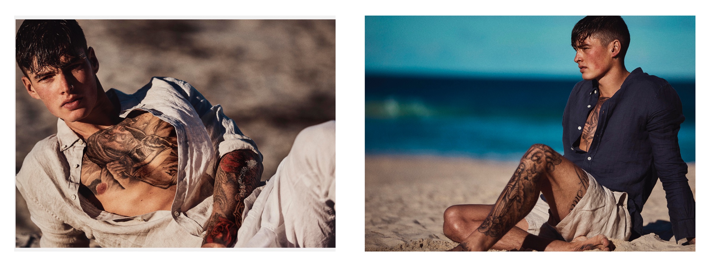 Photography duo Siannon.Zach brings us a new story from down under. Featuring London Management Group fresh face, Adam F., Siannon.Zach collaborate with stylist Eddie for the outdoors shoot. Embracing summer styles, the spotlight is put on Australian fashion brand VENROY. Known for its linen fashions, VENROY achieves a casual cool with its relaxed trousers, lightweight button-downs and easy pullovers. / Grooming by Aiden Xydis.