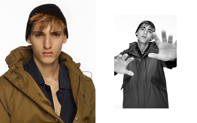 Yanniek wears shirt American Vintage, parka American Vintage, and knit beanie H&M.Pin