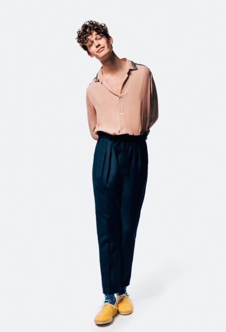 PinLucas wears jacket Walkers Appeal, trousers Solo Io, socks Happy Socks, and boots Reebok.PinLucas wears cardigan Tenkey, scarf Kinloch, and trousers Nine in the Morning.