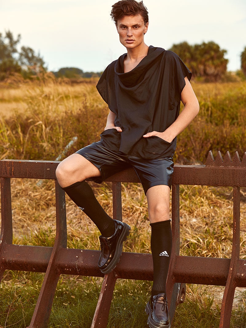 PinVanya wears polo Y-3, shorts Dsquared2, and socks Adidas.