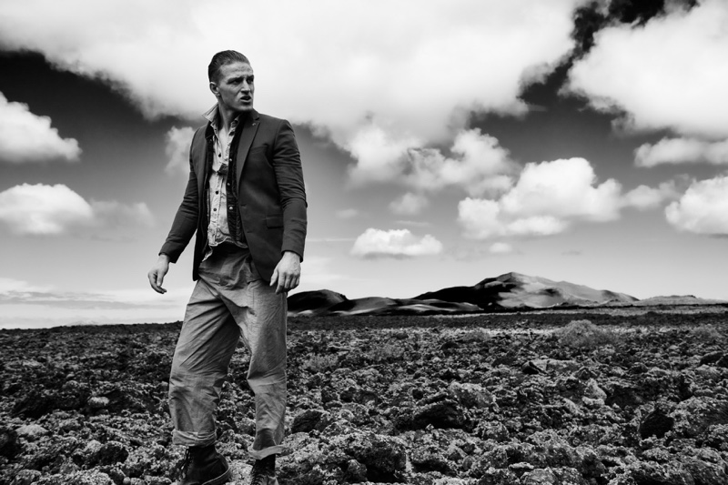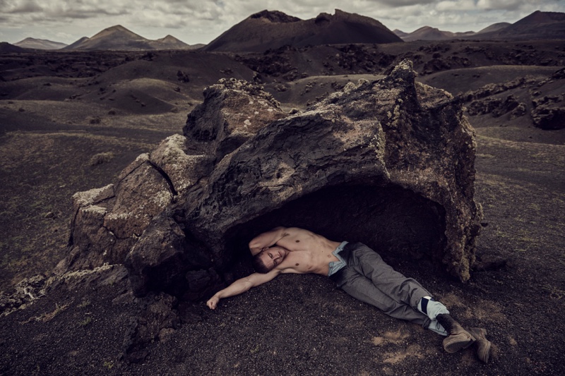 Photography duo Karine & Oliver take us on a journey to the volcanic island of Lanzarote for our most recent exclusive. The duo connect with Supa Model Management up and comer Tom Kill for the epic adventure. Displaying his wild side, Tom runs free in a fun mix of designer fashions. Showing an expert eye for creative layering, stylist Emma Pulbrook pulls together an array of brands, which include Lanvin and Thom Browne. / Grooming by Joshua Leuthold. Post production by Stephanie Wencek.