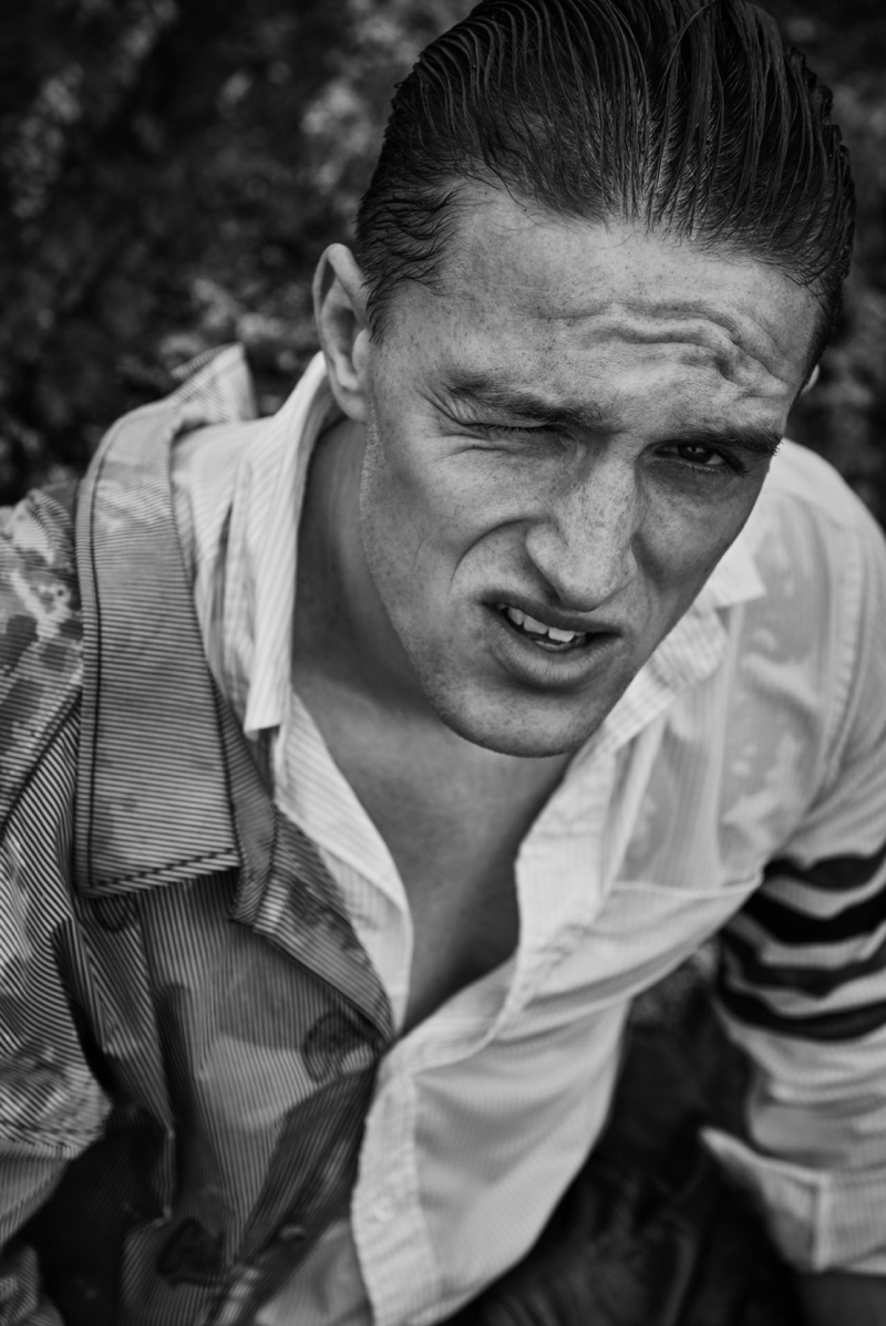 Tom wears shirt Weekday, shirt around waist Lanvin, jeans Diesel, and boots Weekday.Pin