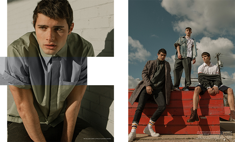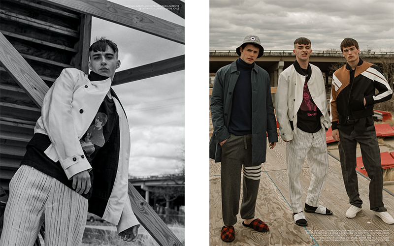 PinLeft: Dylan wears t-shirt Off-White, jacket and pants Ann Demeulemeester from Traffic at The Joule. Pictured Left to Right: Holden wears coat COS, sweater Norse Projects from East Dane, sweatpants Thom Browne from Traffic at The Joule, slippers UGG, and bucket hat Converse. Dylan wears slide sandals Under Armour, t-shirt Off-White, jacket and pants Ann Demeulemeester from Traffic at The Joule. Brad wears jacket Neil Barrett from Traffic at The Joule, shirt Alexander Wang, pants Zanella from Nordstrom, and shoes Tretorn.PinLeft: Holden wears shirt 3.1 Phillip Lim and pants Marni. Right (Pictured Left to Right): Holden wears coat COS, jacket Peter Millar from Nordstrom, jeans R13 from Traffic (The Joule), socks American Apparel, and shoes Tretorn. Dylan wears denim jacket R13 from Traffic at The Joule, tee stylist’s own, trousers Marni, and shoes Aesics. Brad wears sweater Norse Projects from East Dane, shoes Dr Martens, shirt and shorts Thom Browne from Traffic at The Joule.PinLeft (Pictured Left to Right): Holden wears coat Thom Browne from Traffic at The Joule, pants COS and knit beanie Barneys New York. Dylan wears cardigan Comme des Garçons Play, sweatpants Thom Browne from Traffic at The Joule, and shoes Nike. Brad wears shirt Neil Barrett from Traffic at The Joule, overalls COS, shoes Air Jordan, and cap stylist’s own. Right (Left to Right): Brad wears jacket Lublam, shirt Billy Reid, pants Zanella from Nordstrom and shoes Tretorn. Dylan wears shirt Comme des Garçons Play from Traffic at The Joule and pants COS.PinLeft: Brad wears shirt Neil Barrett from Traffic at The Joule, overalls COS, shoes Air Jordan, and cap stylist’s own. Right: Dylan wears jacket R13 from Traffic at The Joule, tee stylist’s own, and pants Marni.PinLeft to Right: Brad wears jacket Neil Barrett from Traffic at The Joule, shirt Alexander Wang, pants Zanella from Nordstrom and shoes Tretorn. Holden wears coat COS, sweater Norse Projects from East Dane, sweatpants Thom Browne from Traffic at The Joule, and hat Converse.PinLeft: Holden wears coat COS, jacket Peter Millar from Nordstrom, and jeans R13 from Traffic at The Joule. Right: Dylan wears tee Comme des Garçons Play from Traffic at The Joule, pants COS, shoes Nike, and scarf stylist’s own.PinBrad wears shirt and shorts Thom Browne from Traffic at The Joule, sweater Norse Projects from East Dane, and shoes Dr Martens.