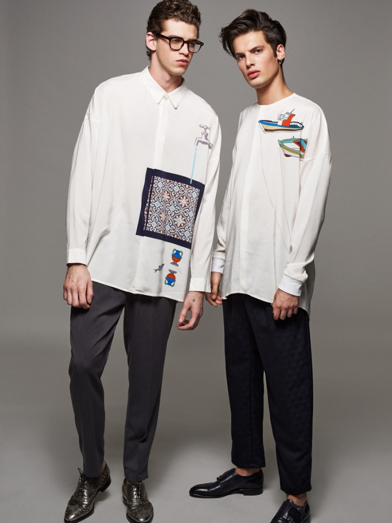 PinHercilio wears shorts L72 and hat Giordano Mercante.PinAndrea wears t-shirt Nhivuru.PinAndrea and Hercilio wear sweater and bomber jacket LC23.PinHercilio and Andrea wear all clothes Sandro Gaeta and shoes Premiata.PinAndrea wears all clothes Sandro Gaeta.PinHercilio wears jumpsuit RHB Project and gloves Giordano Mercante.PinHercilio and Andrea wear all clothes RHB Project.PinHercilio wears all clothes Giordano Mercante.PinAndrea wears all clothes Giordano Mercante and shoes Dr Martens.PinHercilio wears vest Giordano Mercante.