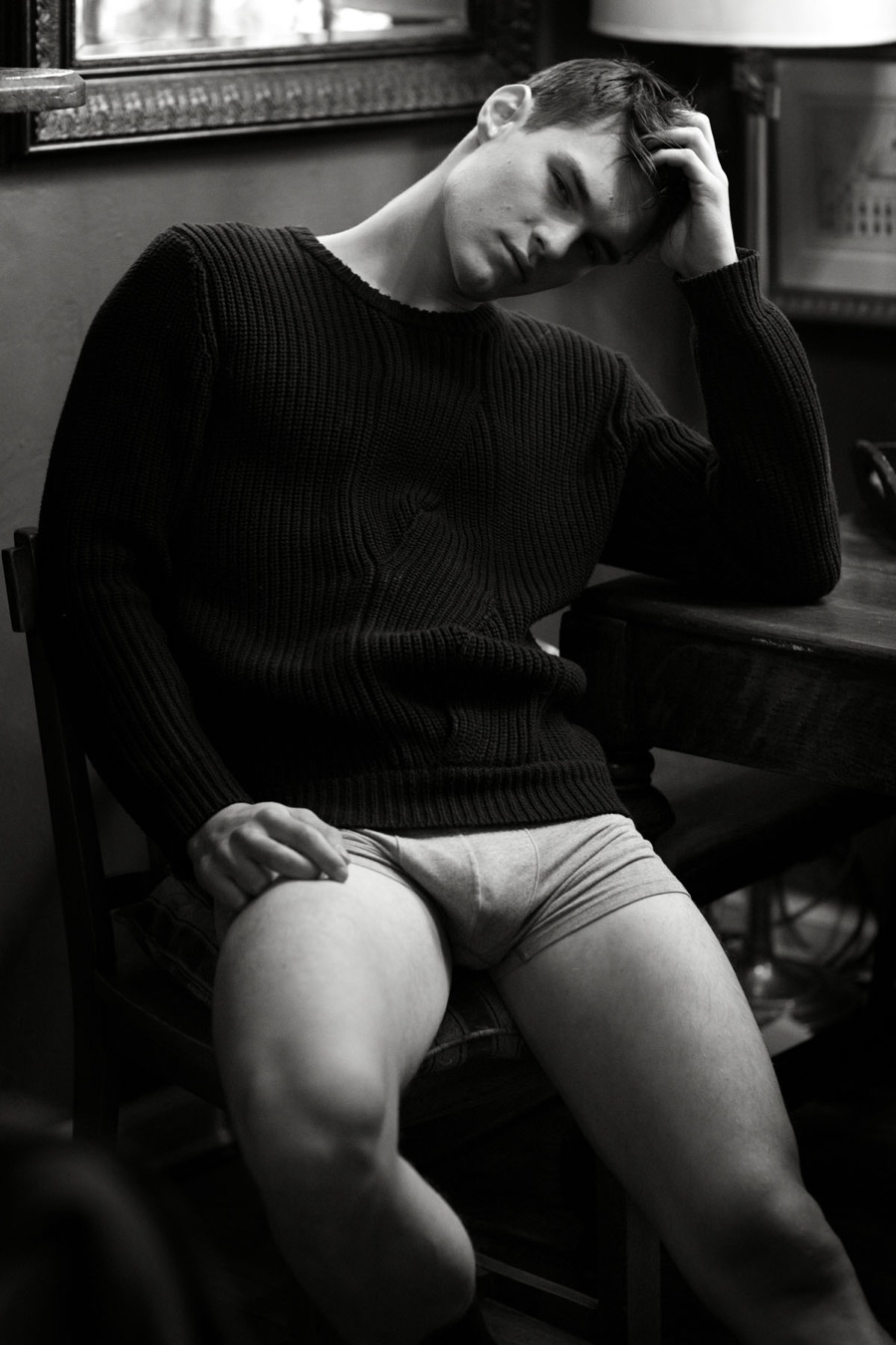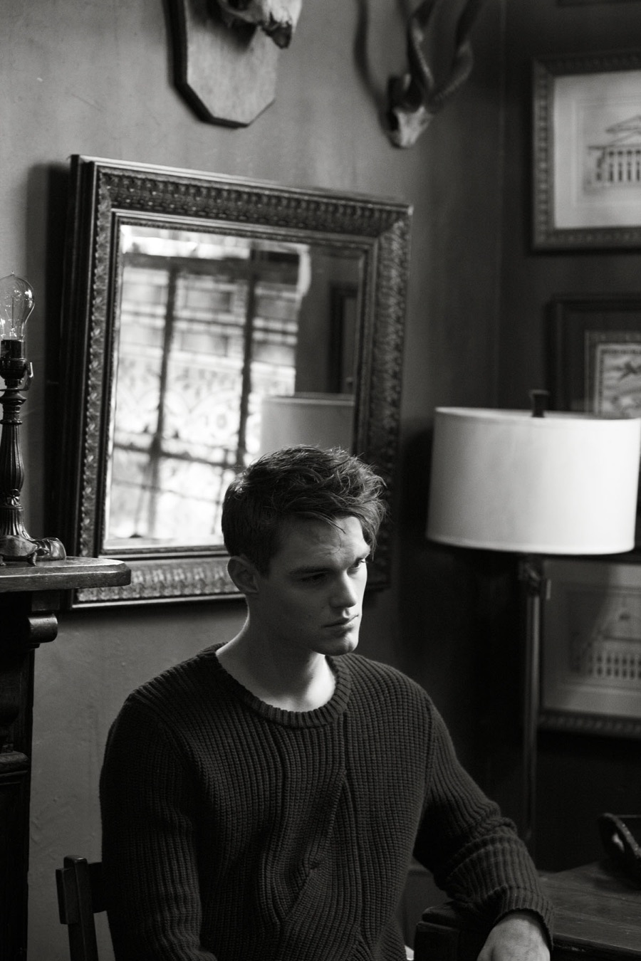 Hailing from Germany, DNA fresh face Christian Zellermayr brushes up on his modeling skills with a new story lensed by photographer Mark Drew. Retreating indoors for a relaxed session, the up and coming model is styled by Brandon Garr, wearing a mix of vintage garments and must-have pieces from the likes of Burberry. / Hair by Issac Davidson (Wilhelmina Talent). Special thanks to Rosco.