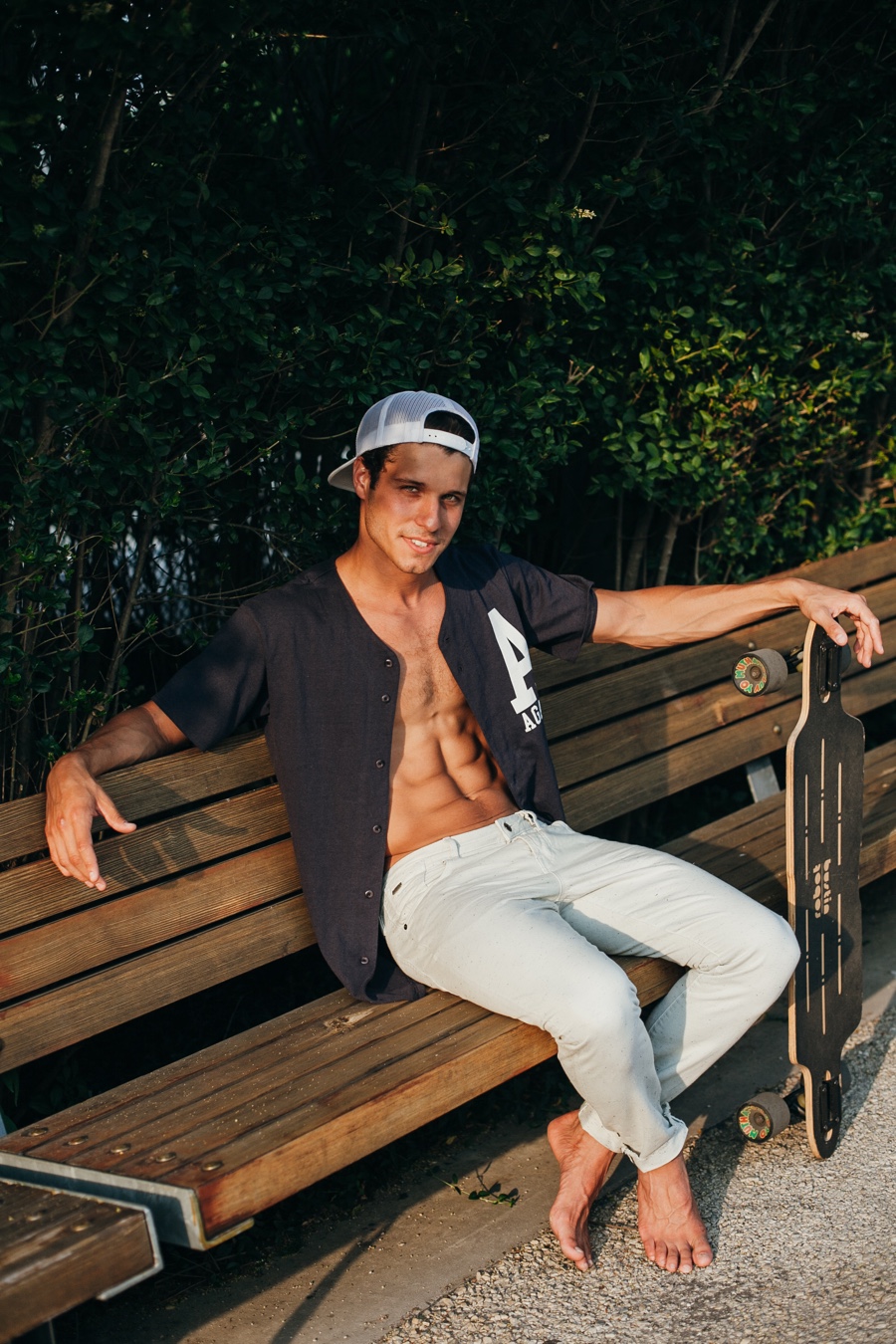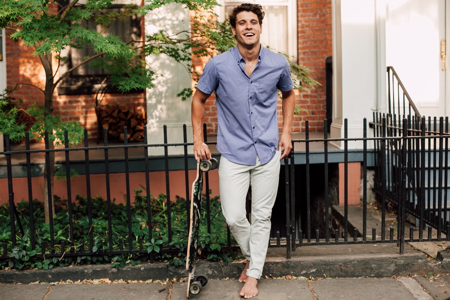 Cody Calafiore is all smiling for a new feature. The former Big Brother player connects with photographer Kara Nixon. An all-American vision, Cody takes on a warm summer day. We receive a glimpse of Clinton Hill, Brooklyn, New York. It’s here that the Soul Artist Management model sports relaxed style. He also enjoys downtime skateboarding. Nixon captures Cody in a video as well. Ultimately, Cody showcases essential styles from the Banana Republic, Gap, and Scotch & Soda.