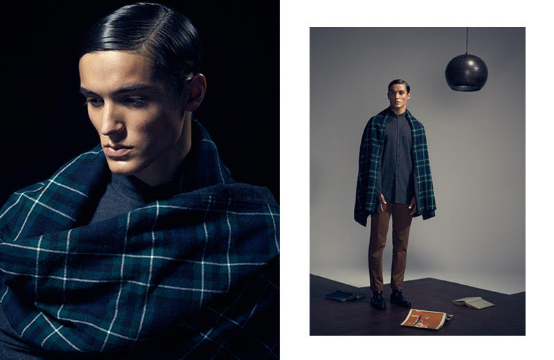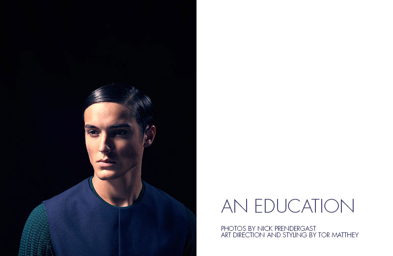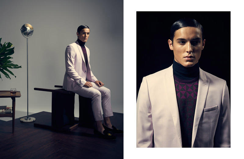 After a sporty outing, photographer Nick Prendergast returns with a new exclusive featuring DNA fresh face Colby Brittain (Kim Dawson Agency). Featuring art direction and styling by Tor Matthey (Independent Artists), the shoot takes a sleek turn. Fashions from Topman, Jil Sander, Burberry and more paint an elegant style picture. Matching the mood, Colby takes a step back in time with a 1920s inspired slicked back hairstyle, courtesy of Walter Fuentes (The Campbell Agency). / Set and prop design by Nicole Hammontree (Sisterbrother).