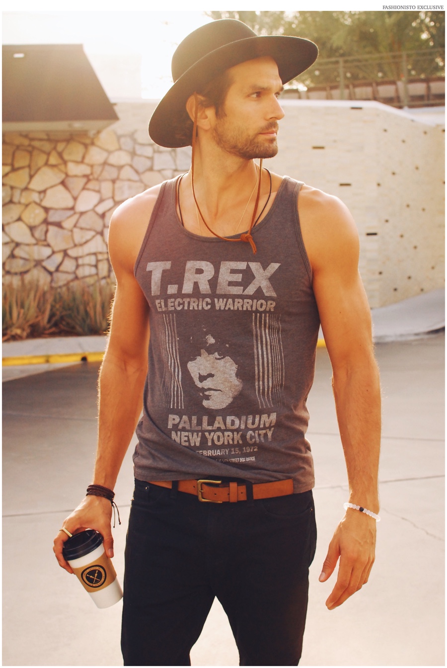 In this casual fashion shoot inspired by Coachella, Colin dons an array of wardrobe staples that perfectly encapsulate the festival vibes, including lightweight tanks, casual shirts, slim-cut jeans, and statement-making sunglasses. With a keen eye for detail, Kevin Roldan expertly captures the nuances of Colin’s attire, highlighting how each piece effortlessly complements the desert landscape while staying true to the carefree spirit of music festivals.