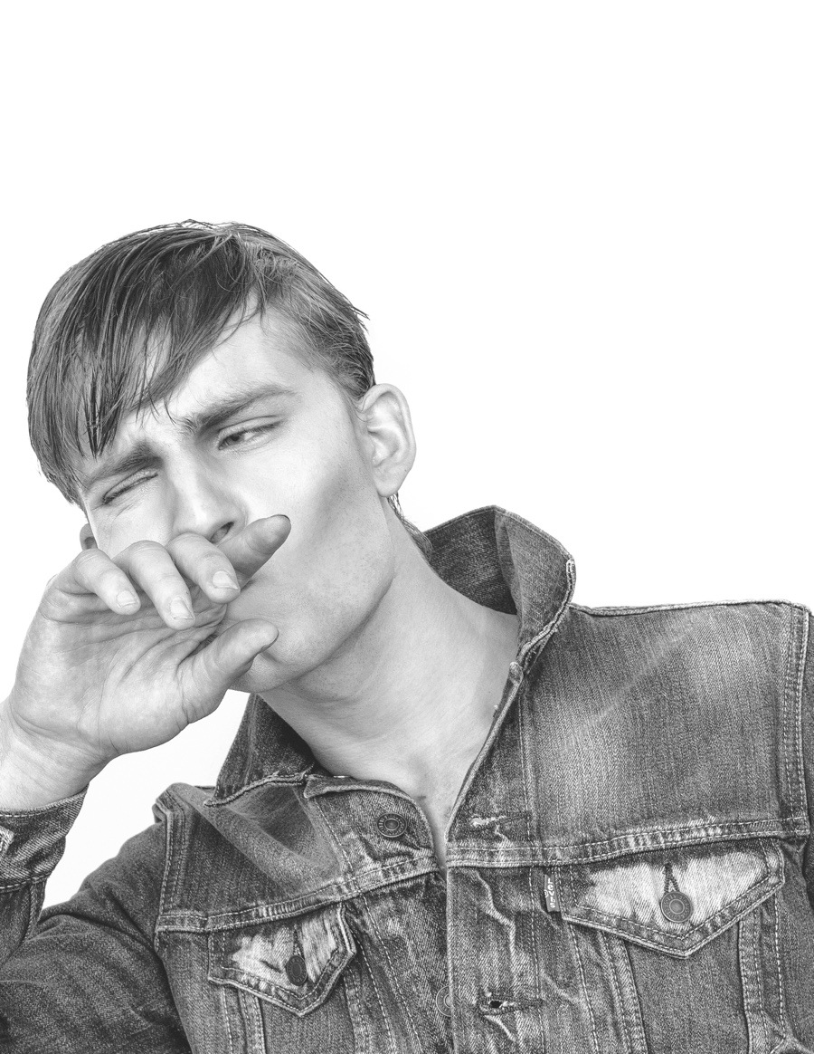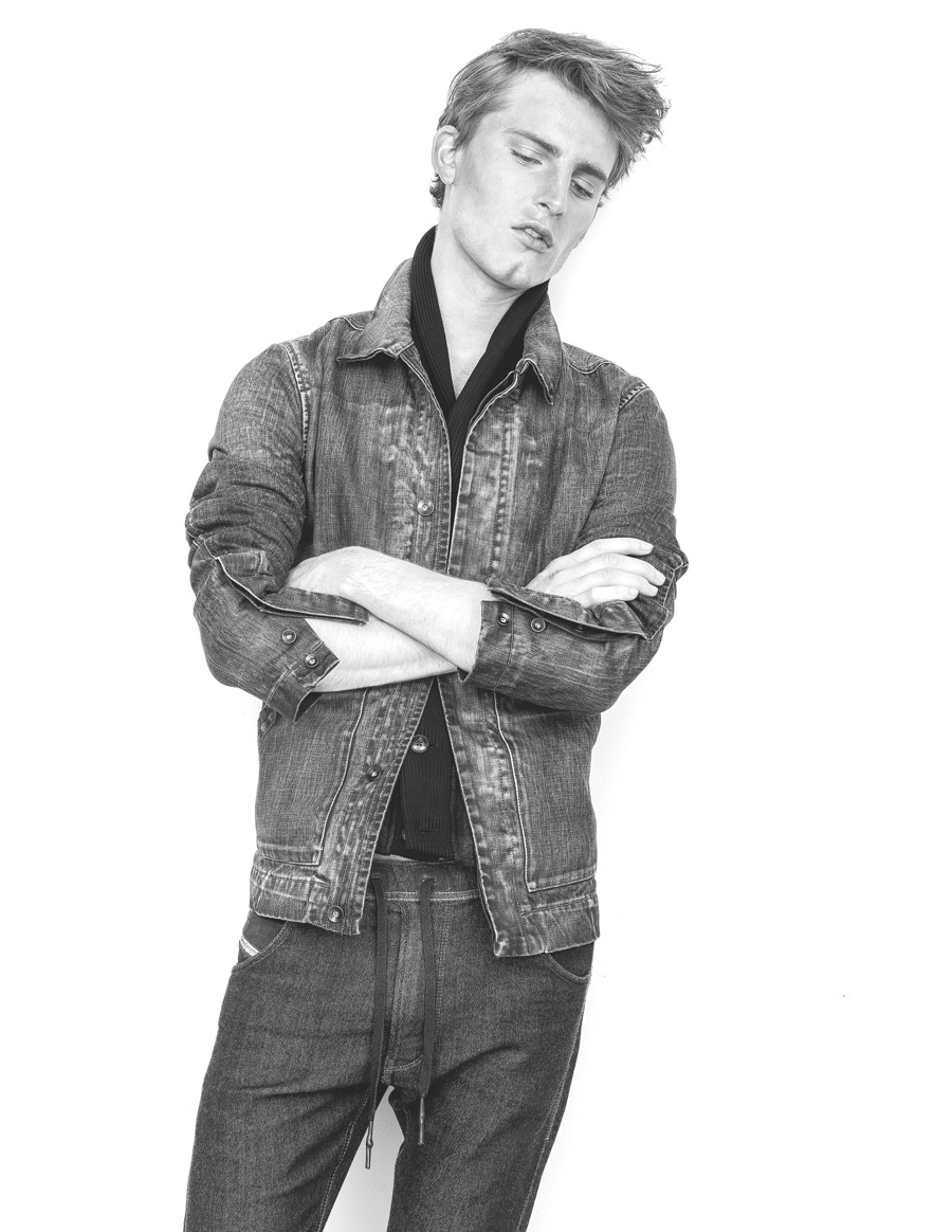 Photographer Mark Binks adopts a simple flair as he connects with stylist Mark John Tripp for a black & white exclusive. Relaxed, essential denim fashions are at the shoot’s forefront as Elite model up and comer Andrew steps into the role of protagonist. Embracing a country aesthetic, Andrew is captured in denim staples from Diesel, A.P.C., Levi’s and other brands. / Grooming by Richard J. using M.A.C. Cosmetics, Kevin Murphy Hair Care and Conair Hair Tools.