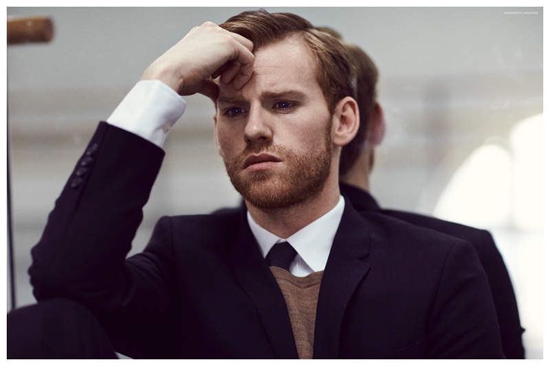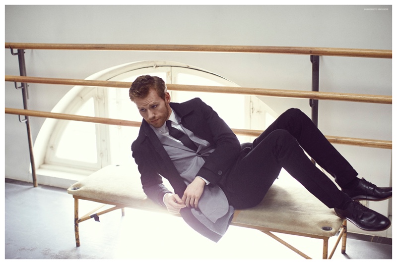 Character Study–Photographer Lasse Wind links up with actor Cyron Melville for a new photo shoot. The star of Danish movie Sommeren ’92, Melville is captured at the Royal Danish Theatre as he prepares for a new role. Outfitted by stylist Camilla Aleksandra, Melville is afforded sartorial looks as he is captured in pieces from Whyred, Selected Homme and more. / Art direction and grooming by Swiss makeup artist Jesca Li (Make It Up).