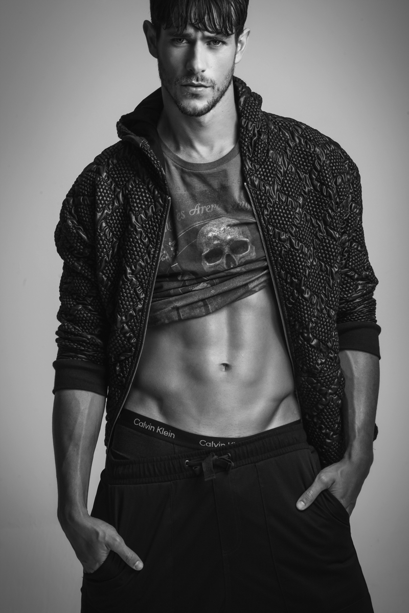 Felipe Martins (Elo Management) is our latest editorial star as he embraces black fashions and shows off his six-pack for a shoot with photographer Ganzaro (Godiva Art Studio). The Brazilian swimmer and model also stars in an accompanying short video as he rocks contemporary staples from Diesel, Colcci, Calvin Klein and other brands. / Art direction and styling by Godiva Art Studio. Photo assistance by Santiago Liniers. Grooming by Melissa Marilac.